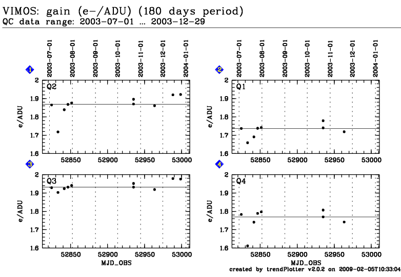 Trending plot for GAIN (conversion factor from ADU to electrons, e-/ADU).