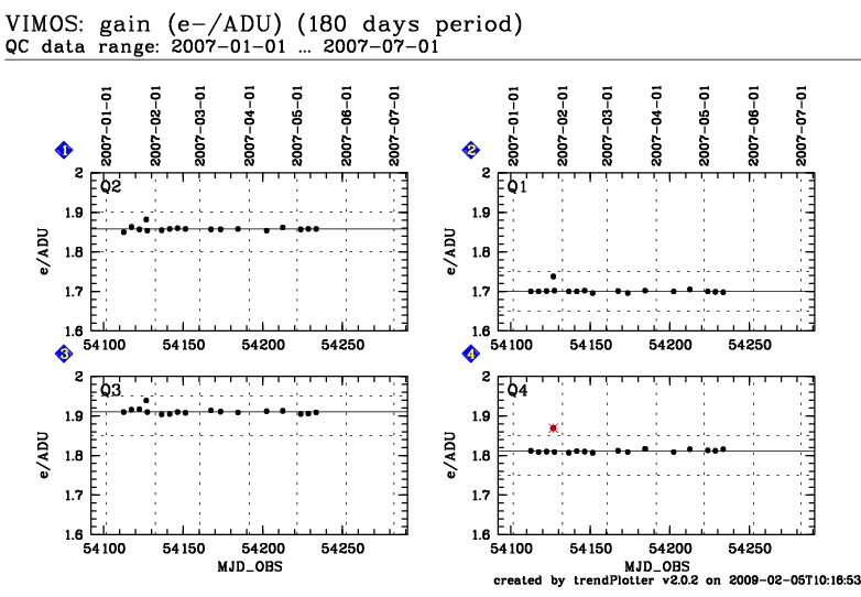 Trending plot for GAIN (conversion factor from ADU to electrons, e-/ADU).