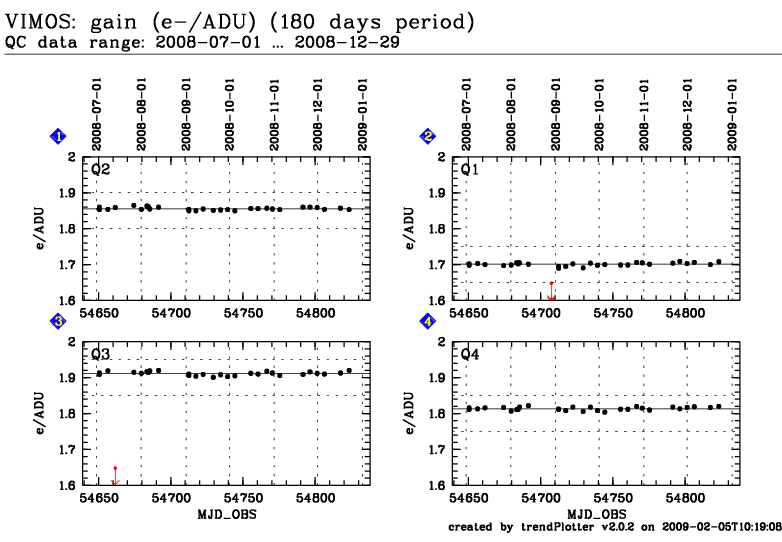 Trending plot for GAIN (conversion factor from ADU to electrons, e-/ADU).