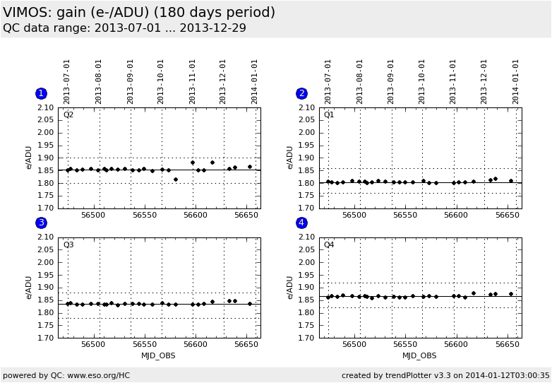 Trending plot for GAIN (conversion factor from ADU to electrons, e-/ADU).