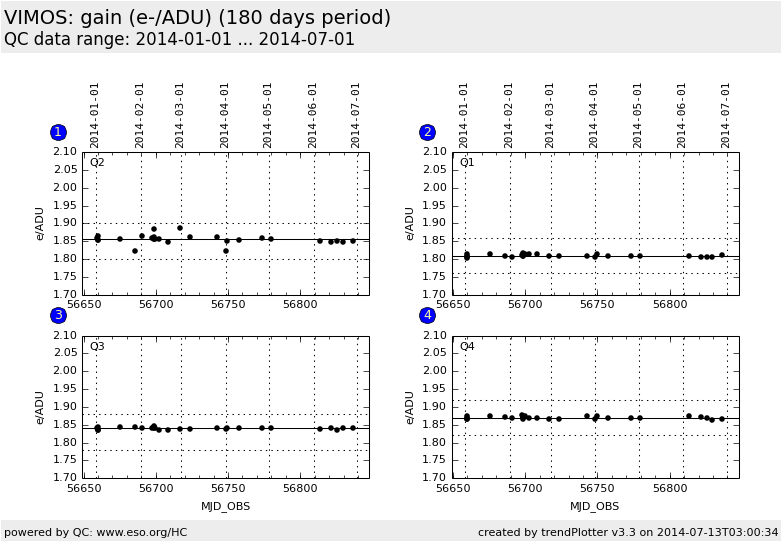 Trending plot for GAIN (conversion factor from ADU to electrons, e-/ADU).