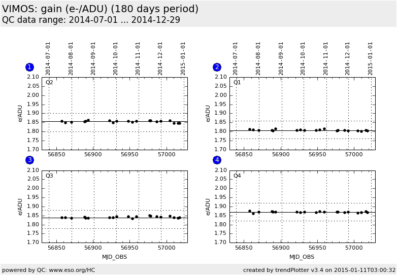 Trending plot for GAIN (conversion factor from ADU to electrons, e-/ADU).