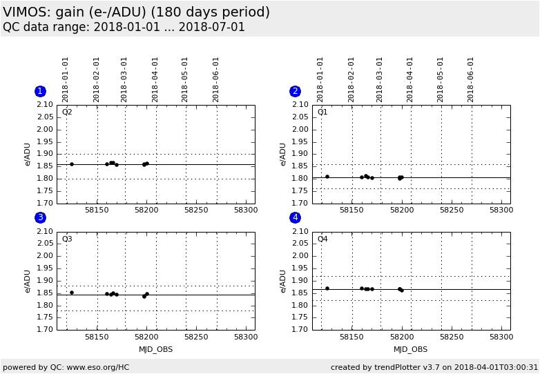 Trending plot for GAIN (conversion factor from ADU to electrons, e-/ADU).