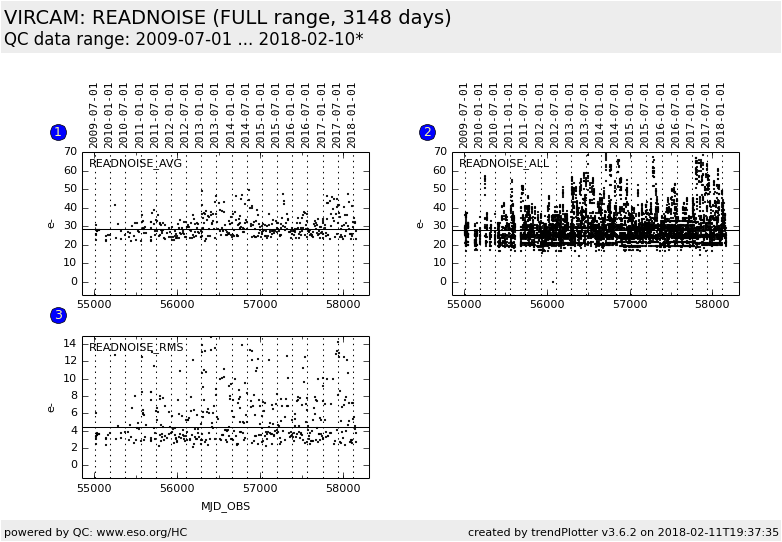 High READNOISE values are not only indicators for larger statistical noise, but also for differences between the two dark frames,