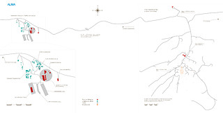 The ALMA Operations Support Facility (OSF), at 2,900 meters above sea level, is located 40 driving minutes from San Pedro de Atacama. The drive from the OSF to the Array Operations Site (AOS) and APEX, located at 5,000 m altitude, takes about 50 minutes (~25 km). At the AOS are the antennas and the Correlator. Only ALMA certified vehicles and drives with an ALMA “driver’s license” are allowed to get to the AOS. Children under 16 years are not allowed to go up.