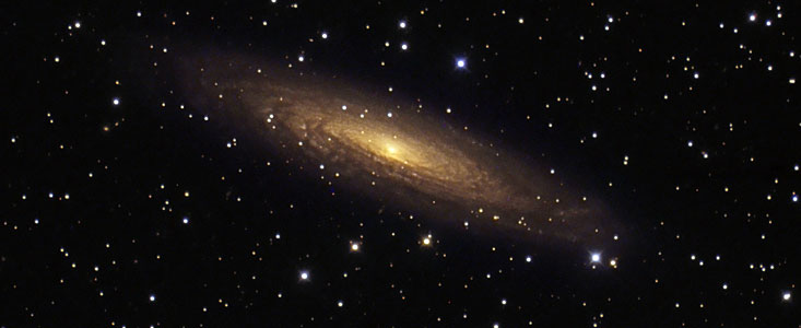NGC 6118, një galaktikë spirale madhështore, shndërrin në këtë pamje, duke shfaqur shiritin qendror dhe krahët e ngushta spirale në yjësinë e Gjarprit. Galaktika ndonjëherë është e njohur nga astronomët amatorë si "Galaktika pulsuese", sepse ky objekt relativisht i zbehtë e jo shumë i qartë, herë pas here zhduket, kur shihet nëpërmjet teleskopëve të tyre në një orientim të caktuar, dhe papritur zhduket përsëri kur pozicioni i syrit zhvendoset. Zonat ku ndodhen yjet e të ndritshëm blu, që janë duke u formuar në galaktikë, janë të ndriçuar bukur, madje edhe nga 80 milionë vjet-dritë larg. Në 2004, nga vëzhgimet normale të kësaj galaktike, u pa një "yll të ri", i shfaqur afër kufijëve të galaktikës (mbi qendrën e imazhit). Shumë larg të qënit një yll i ri, ky objekt, supernova 2004dk, është në fakt drita e shpërthimit të fuqishëm të atij ylli.