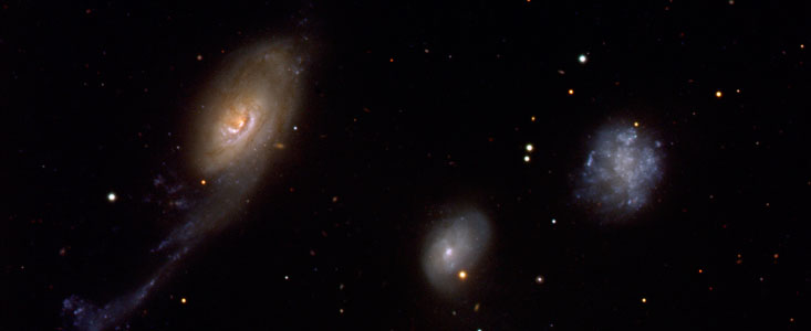 NGC 87, lart djathtas, është një galaktikë e parregullt e ngjashme me satelitët e Rrugës së Qumështit, Retë e Magelanit. NGC 88, në qendër, është një galaktikë spirale me një mbulesë të jashtme të shpërndarë, ndoshta shumica e përbërë nga gazi. NGC 89, në mes poshtë, është një galaktikë tjetër spirale me dy krahë të mëdhenj spiralë. Anëtari më i madh i sistemit, NGC 92, nga e majta, është një galaktikë spirale “Sa” me një formë të pazakontë. Një nga krahët e saj, i gjatë rreth 100,000 vite-dritë, është shtrembëruar nga bashkëveprimet dhe përmban sasi të mëdha pluhuri.