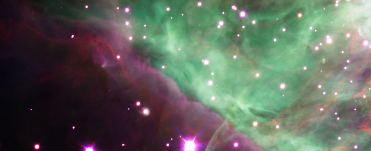 Zona qendrore e Mjegullnajës së Orionit (M42, NGC 1976) e parë me infra të kuqe nga High Acuity Wide Field K-band Imager (HAWK-I), një instrument në Teleskopin Shumë të Madh të ESO-s në Paranal.