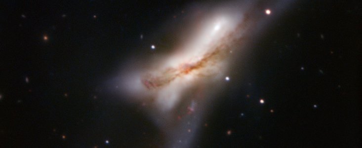 NGC 520 - e njohur dhe me emrin Arp 157 - duket si një galaktikë në mes të një shpërthimi. Në të vërtetë, është krejtësisht e kundërta. Dy galaktika spirale gjigante janë duke u përplasur me njëra-tjetrën, duke u shkrirë dhe formuar një bashkim të ri. Kjo ndodh shumë ngadalë, për miliona vjet - i gjithë procesi ka filluar rreth 300 milionë vjet më parë. Ky objekt, me diametër rreth 100 000 vjet-dritë, është tashmë në fazën e mesme të procesit të bashkimit, dy bërthamat nuk janë bashkuar akoma, por të dy disqet po. Për shkak të bashkimit një bisht yjesh dhe një linjë të dukshme pluhuri është larguar paksa nga objekti. NGC 520 është një nga galaktikat bashkëvepruese dhe më të ndritshme në qiell dhe shtrihet në drejtimin e yjësisë së Peshqëve, afërsisht 100 milionë vite-dritë larg Tokës.