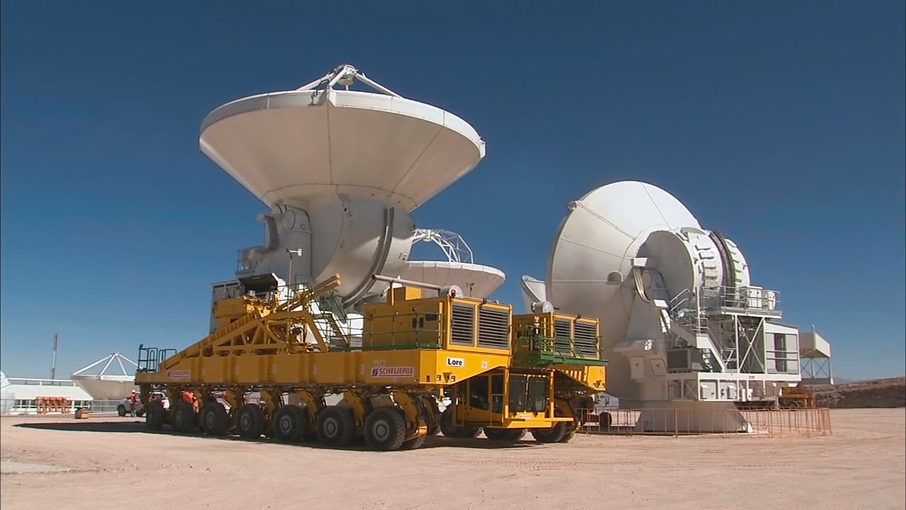 An overview of the whole process of moving one of the 12-metre ALMA antennas, using the transporter Lore, is shown in this compilation. In this case, the move took place at the observatory’s Operations Support Facility, at an altitude of 2900 metres in the foothills of the Chilean Andes, but the transporters are also used to move antennas to, from, and around the Array Operations Site, at an elevation of 5000 metres on the Chajnantor Plateau.