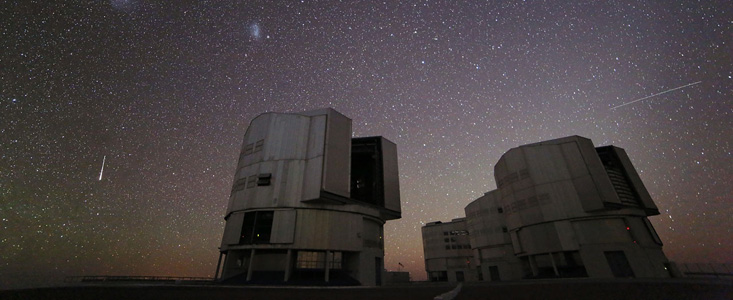 Vom 14.-16. Dezember 2012 hatte der Sternschnuppenstrom der Geminiden einen eindrucksvollen Auftritt über dem Paranal-Observatorium der ESO in Chile. Als die Meteore über der Anlage herabregneten, stand ESO-Fotobotschafter Gianluca Lombardi mit seiner Kamera bereit, um das Spektakel aufzunehmen. Er verbrachte über 40 Stunden mit der Aufnahme des Schauers.