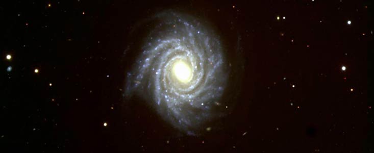 Dieses spektakuläre Bild der großen Spiralgalaxie NGC 1232 wurde am 21. September 1998 unter guten Beobachtungsbedingungen erhalten. Es wurde aus drei Einzelaufnahmen im ultravioletten, blauen und roten Licht zusammengesetzt. Die Farben der verschiedenen Regionen sind deutlich sichtbar: Das Zentralgebiet enthält ältere, rötlich leuchtende Sterne (Photo 37e/98), während die Spiralarme von jungen, bläulichen Sternen und roten Sternentstehungsgebieten bevölkert sind. Man beachte die gestörte Begleitgalaxie am linken Rand, die wie der griechische Buchstabe "Theta" aussieht.