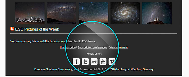 Nuværende og fremtidige abonnenter til ESO NEWS kan nu modtage vores ugentlige nyhedsbrev i deres modersmål. Nuværende tilmeldte kan besøge deres tilmeldings indstillinger, der kan ses fremhævet i billedet ovenfor, og vælge et foretrukket sprog. Nye abonnenter kan vælge deres ynglings sprog når de tilmelder sig.