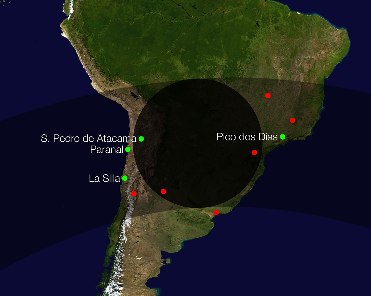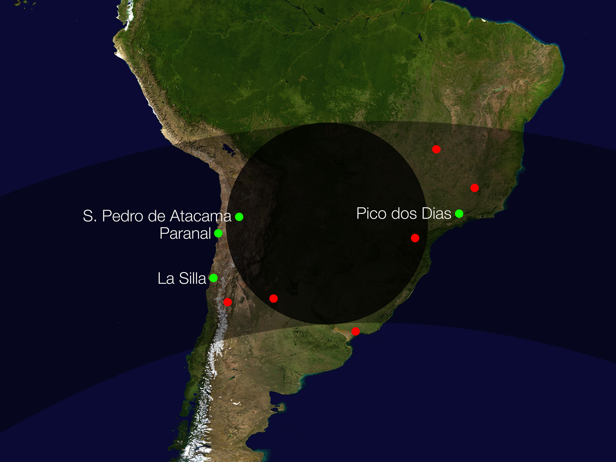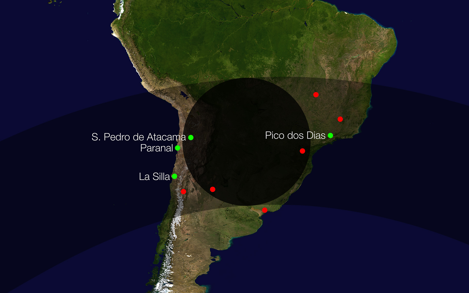 Dette kort viser bevægelsen af dværgplaneten Makemakes skygge under okkultationen af en svag stjerne i april 2011. Flere steder i Sydamerika, herunder på ESOs La Silla og Paranal-observatorer, så kortvarigt den svage stjerne forsvinde, mens dens lys blev blokeret af Makemake. Denne dværgplanet har en størrelse på omkring to tredjedele af Plutos og den kredser om Solen i en fjern bane, der ligger længere væk end Plutos, men tættere på Solen end Eris, der er den tungeste dværgplanet i Solsystemet. Det var forventet, at Makemake har en atmosfære ligesom Pluto, men det har nu vist sig ikke at være tilfældet.