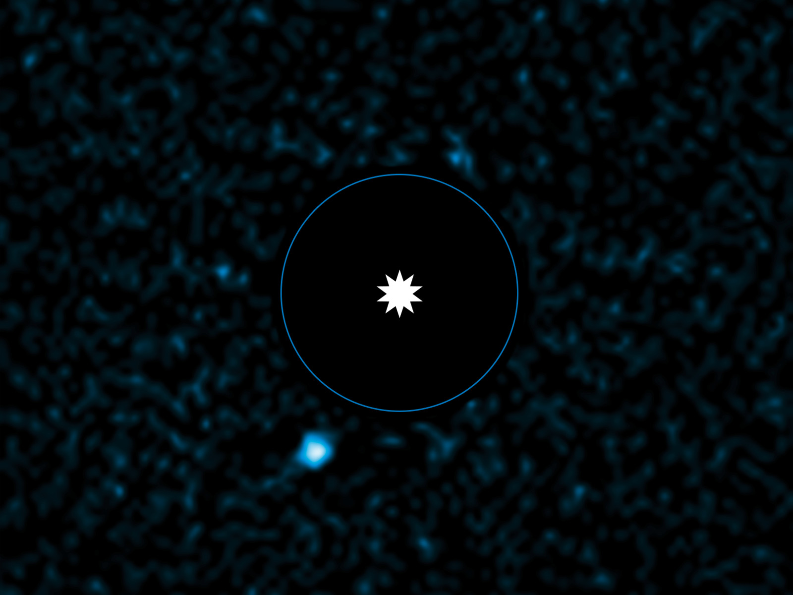 Dette billede fra ESOs Very Large Telescope (VLT) viser den nyopdagede planet, HD95086 b ved siden af dens moderstjerne. Observationerne blev gjort ved brug af det adaptive optik instrument NACO på VLT i infrarødt lys, samt ved brug af en teknik kaldet ”differential imaging”, der forbedrer kontrasten mellem planeten og dens blændende værtsstjerne. Stjernen selv er blevet fjernet fra billedet mens man forarbejdede det, for at fremme udsynet til den svage exoplanet, dens position er markeret. Exoplaneten kan ses i nedre venstre hjørne.