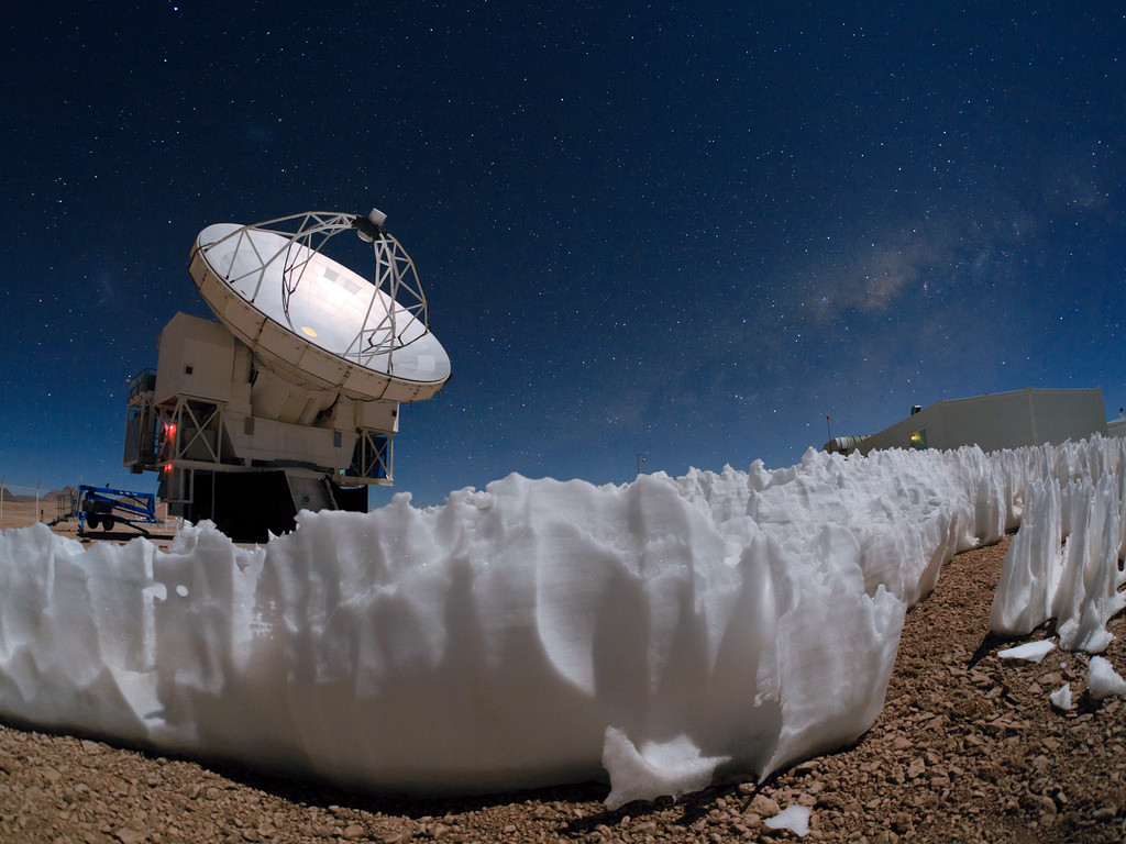 Atacama Pathfinder Experiment (APAX) teleskopet – fanget på dette dramatiske billede taget af ESOs fotoambassadører Babak Tafreshi – er et af de redskaber, der bruges af ESO til at studere universet i andet end synligt lys. Det er placeret på Chajnantor-højsletten i en højde af 5000 meter.