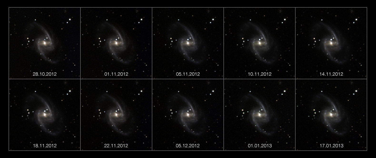 Astronomerne opdagede mere end 200 nye supernovaer i 2012, hvor SN 2012fr er blandt de klareste. Supernovaen blev først set d. 27.oktober 2012, da den endnu var meget lyssvag, og den nåede sit lysmaksimum d. 11.november 2012 [2]. På det tidspunkt kunne den nemt ses som en svag stjerne gennem et mellemstort amatørteleskop. Videoen er sat sammen af en række billeder af galaksen optaget over en periode på tre måneder fra opdagelsen i oktober frem til midten af januar.
