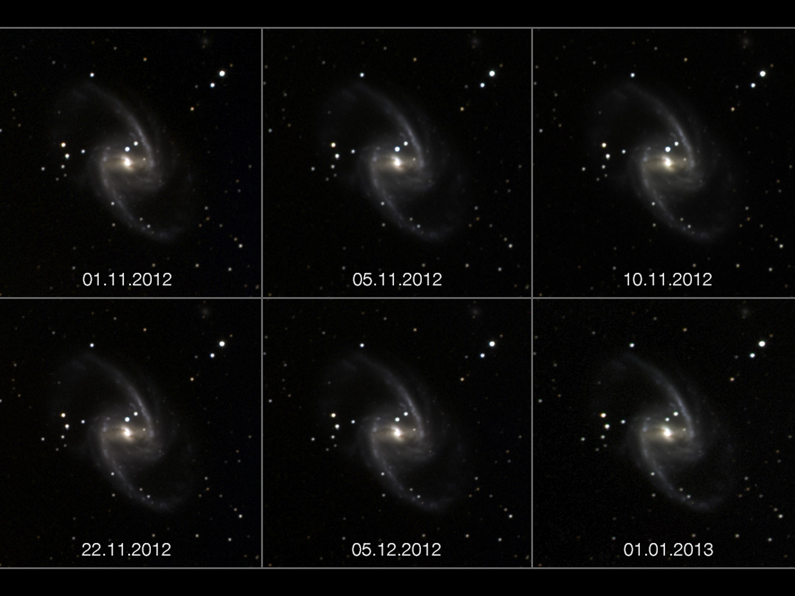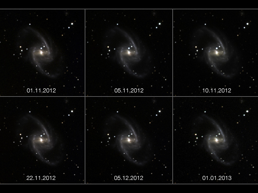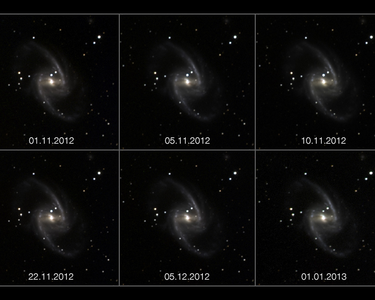 En usædvanlig ny video viser hvordan en supernovaeksplosion i galaksen NGC 1365 hurtigt blusser op og derefter langsommere blegner igen. Supernovaen, der er navngivet SN 2012fr, blev opdaget af den franske astronom Alain Klotz d.27. oktober 2012. Billederne indfanget af det lille robotteleskop TAROT, placeret ved ESOs La Silla Observatorium i Chile, er blevet samlet til denne unikke film.