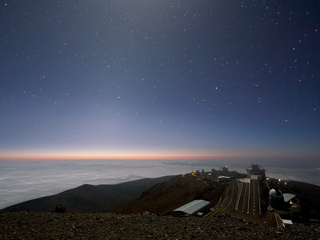 Måneskin og zodiakallys over La Silla