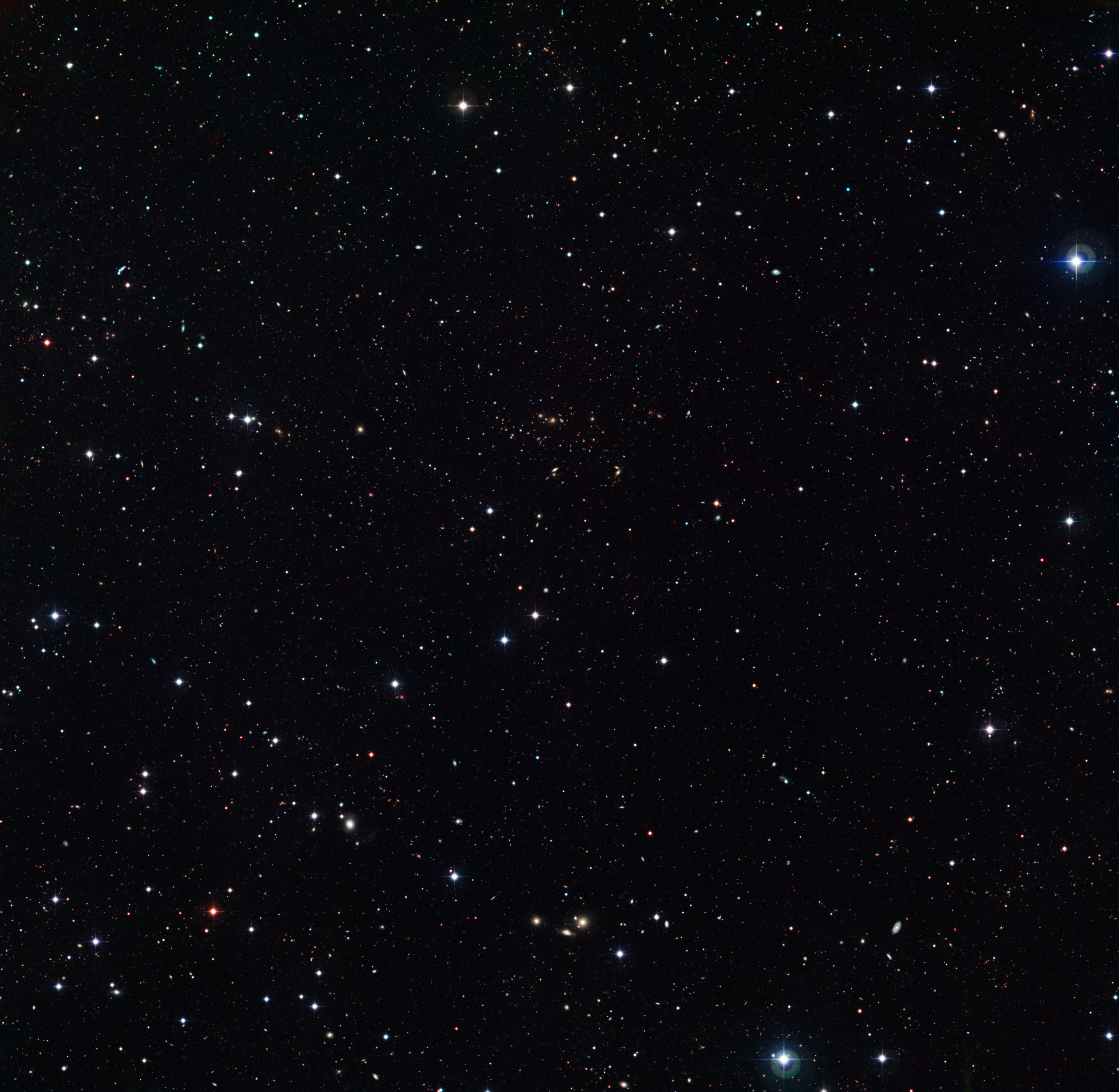 Dette billede viser et område der også er blevet undersøgt som en del af FORS Deep Field (FDF), et projekt der gennemsøgte et antal områder på himlen i stor detalje og dybde, ved at bruge FORS2 spektrograf instrumentet der for tiden er monteret på ESOs Very Large Telescope på Paranal-observatoriet i Chile. Dog undersøgte man områderne med mange flere filtre i WFI observationerne end man førhen havde gjort med FDF, og større områder af himlen blev undersøgt, hvilket resulterede i billeder som dette.