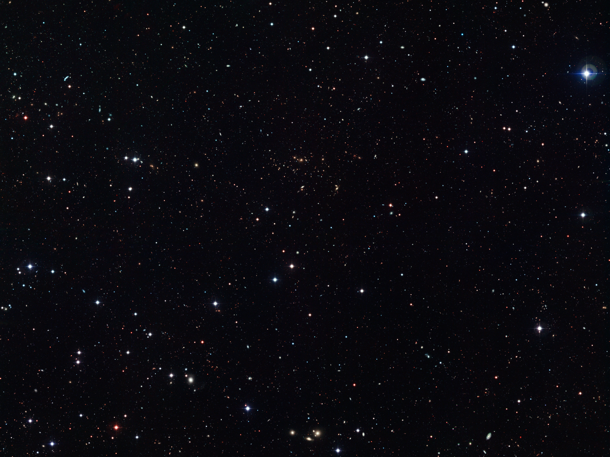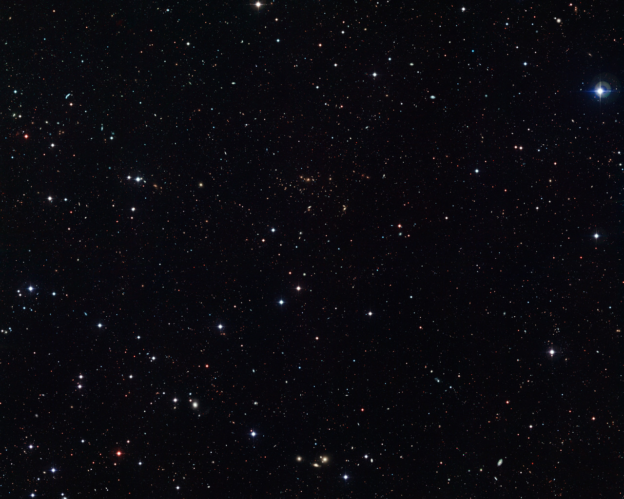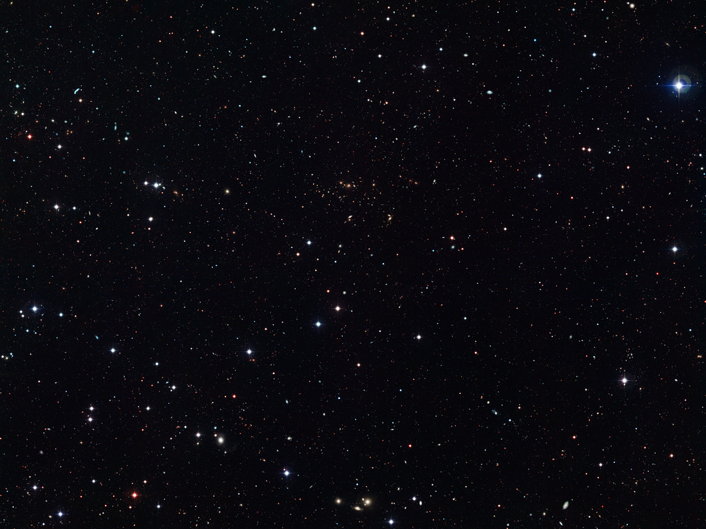 Fjerne stjerner og galakser, ses spredt ud over dette billede. Dette er et meget dybt billede der er taget med Wide Field Imager (WFI), der er et kamera monteret på MPG/ESO 2,2-meter teleskopet, beliggende på La Silla-observatoriet i Chile.