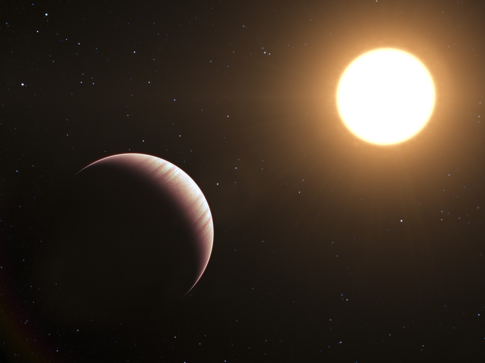 Tässä taiteilijan näkemyksessä näkyy eksoplaneetta Tau Boötis b. Se oli yksi ensimmäisenä löytyneitä eksoplaneettoja vuonna 1996 ja edelleen se on yksi lähimmistä tunnetuista planeettajärjestelmistä. ESOn VLT-teleskooppia käyttäneet tähtitieteilijät onnistuivat havaitsemaan ja tutkimaan Tau Boötis b -planeetan heikon valon ensimmäistä kertaa. Käyttämällä nokkelaa havintokeinoa ryhmä sai selville, että odotusten vastaisesti planeetan ilmakehä vaikuttaa olevan kylmempi ylemmissä kerroksissa.
