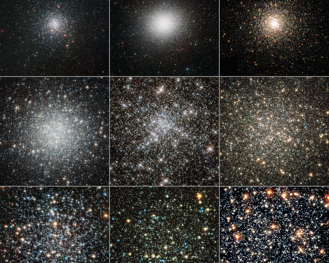 Tämä kooste esittää joukkoa pallomaisia tähtijoukkoja, joita tutkittiin käyttäen Hubblea ja ESO:n Chilessä sijaitsevan La Sillan observatorion MPG/ESO 2.2-metrin teleskooppia. Aineistosta nähdään, että vaikka kaikki muodostuivat jokseenkin samaan aikaan, tähtijoukot ovat ikääntyneet dramaattisen erilaisilla nopeuksilla raskaampien tähtien vajotessa tähtijoukkojen keskustoihin sedimentaatiota muistuttavassa prosessissa.