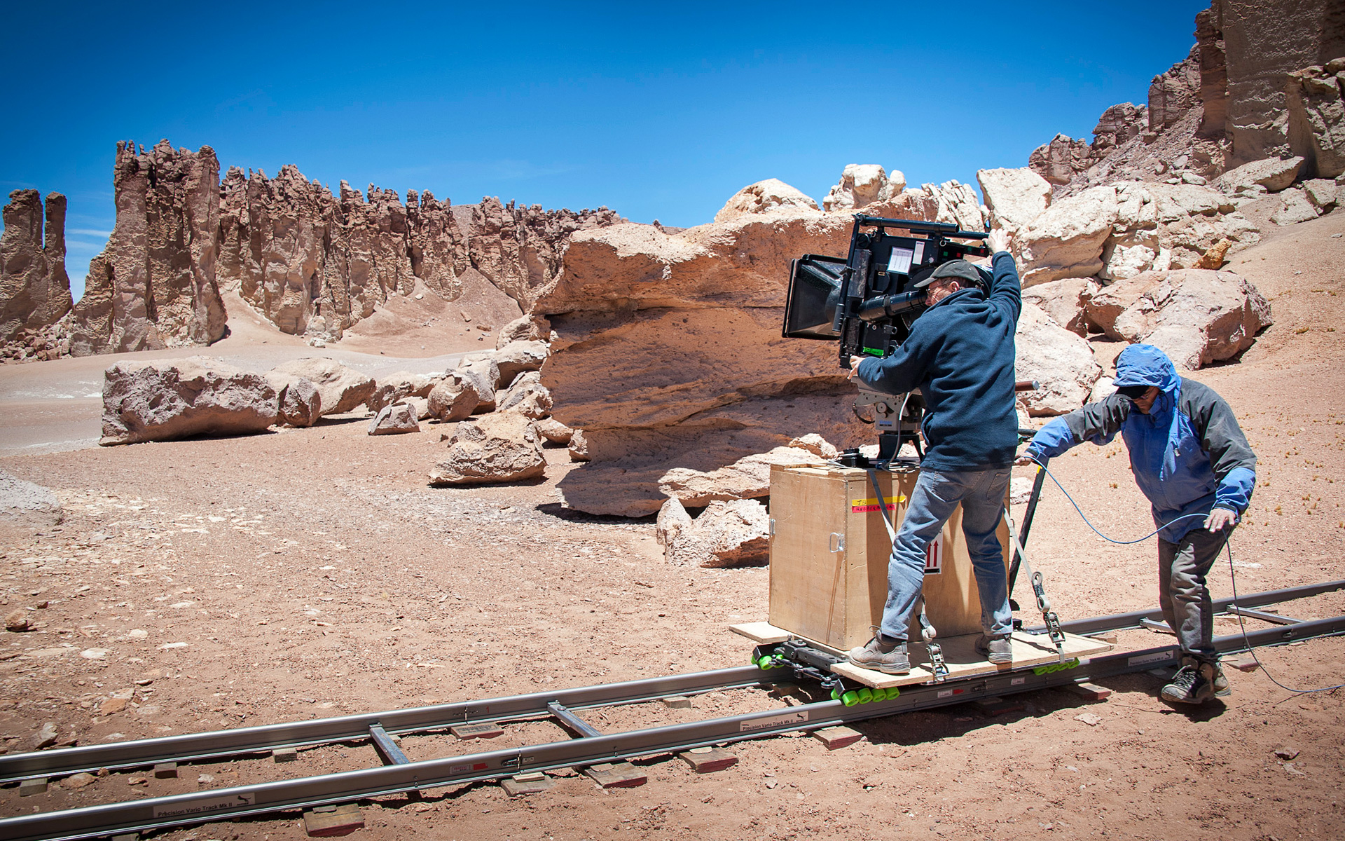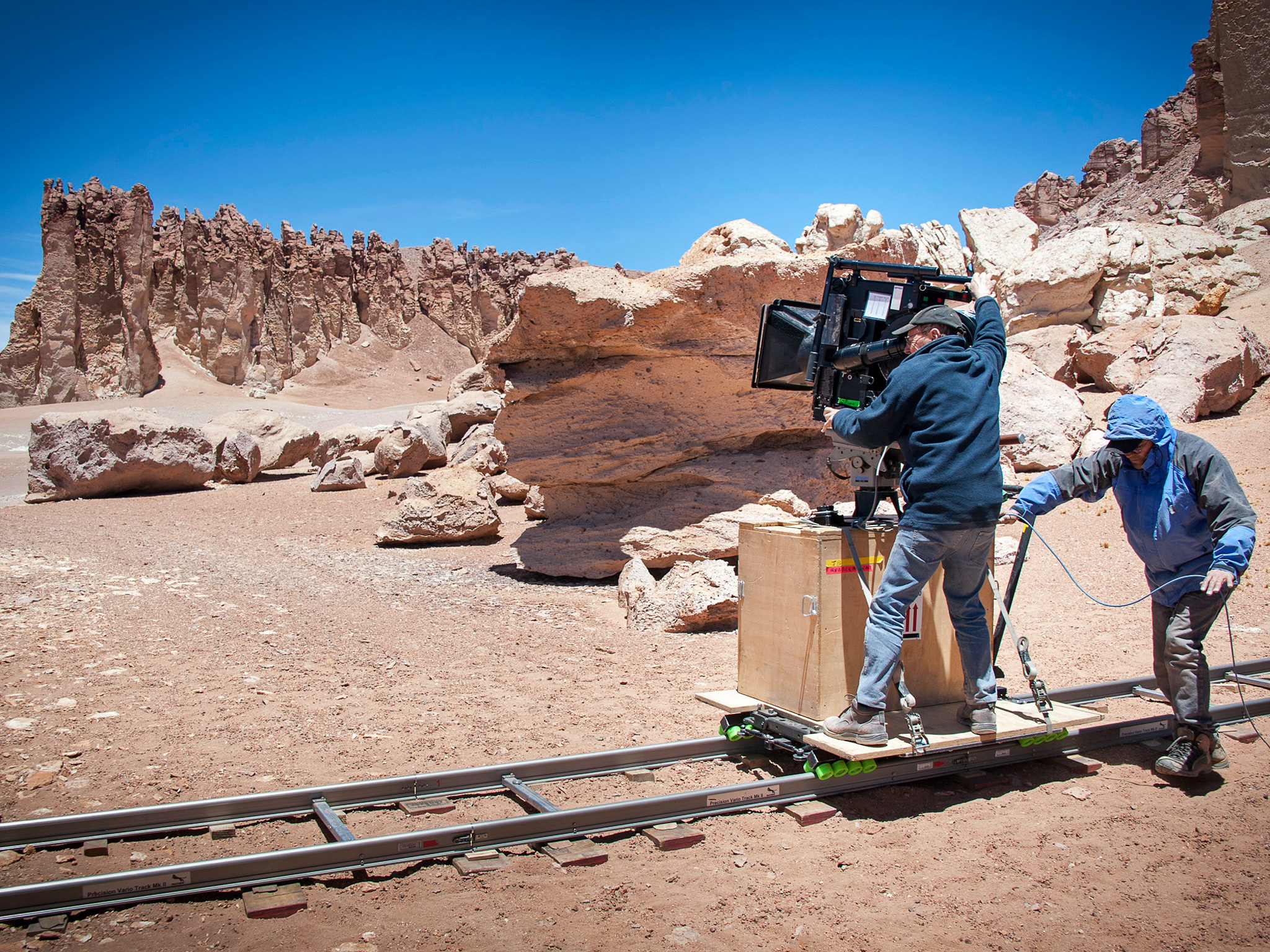 Hidden Universe -elokuvan kuvaaja Malcolm Ludgate kuvaamassa Chilen kuivassa Atacaman autiomaassa. Hidden Universe julkaistiin IMAX® -teattereissa ja jättiläisvalkokangasteattereissa kautta maailman. Sen on tuottanut australialainen tuotantoyhtiö December Media yhteistyössä Film Victorian, Swinburnin teknillisen korkeakoulun, MacGillivray Freeman Films:n ja ESO:n kanssa.