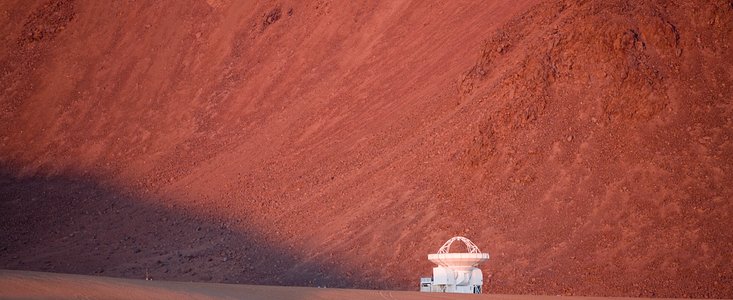 Un oiseau planant au-dessus du désert isolé d'Atacama au Nord du Chili, probablement le désert le plus sec du monde, peut être surpris de se retrouver au-dessus du Very Large Telescope (VLT) de l'ESO à Paranal. L'installation astronomique terrestre la plus évoluée au monde, le site héberge quatre Unit Telescope de 8.2 mètres, quatre Auxiliary Telescope de 1.8 mètres, le VLT Survey Telescope (VST), et le Visible et Infrared Survey Telescope for Astronomy de 41 mètres, pouvant être vu sur le sommet de la montagne avoisinante à partir de la plate-forme principale.