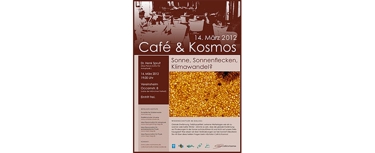 Dr. Henk Spruit vom Max-Planck-Institut für Astrophysik wird diese heiklen Fragen mit den Gästen des Café & Kosmos am 14. März diskutieren und neue Bilder von Veränderungen auf der Sonne zeigen. Er wird dabei auch erklären, wie gut wir unser Zentralgestirn und die Vorgänge in seinem Innern verstehen.