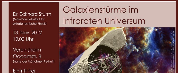 Nach einer unterhaltsamen Einführung in die Infrarot-Astronomie wird Dr. Eckhard Sturm vom MPE dieses spektakuläre Ergebnis, das fundamental für unser Verständnis der Galaxienentwicklung ist, näher erklären und diskutieren.