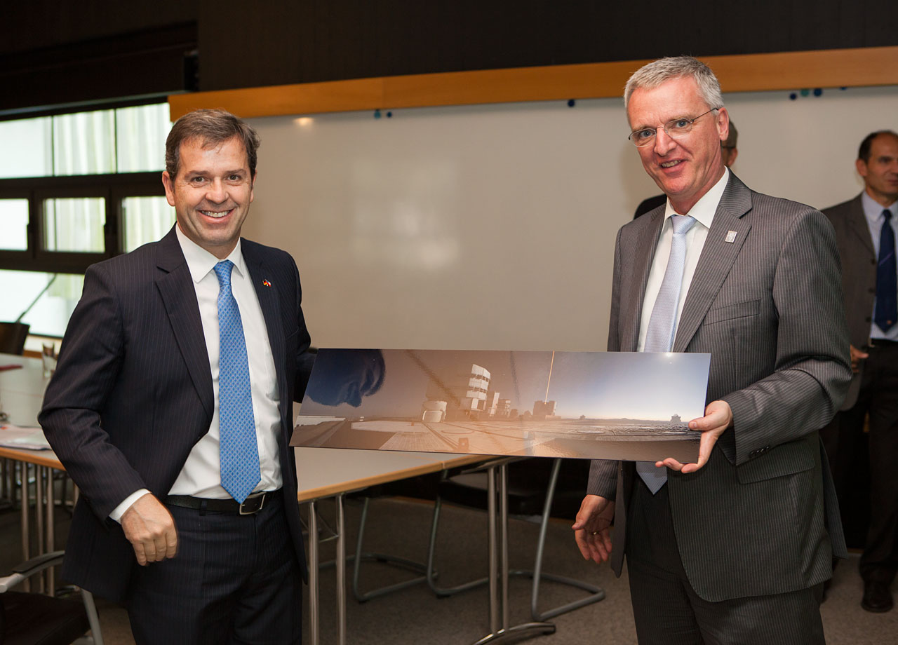 Am 24. Juni 2013 hat eine chilenische Abordnung den ESO-Hauptsitz in Garching bei München besucht. Zu der Delegation, die vom chilenischen Wirtschaftsminister Félix de Vicente geleitet wurde, zählten auch Jorge O’Ryan Schütz, der chilenische Botschafter in Deutschland, Bettina Stengel, die Direktorin von ProChile Deutschland, der Vizepräsident des Komitees für Ausländische Investitionen Matías Mori und der Kabinettschef des Wirtschaftsministers Juan José Bouchon.