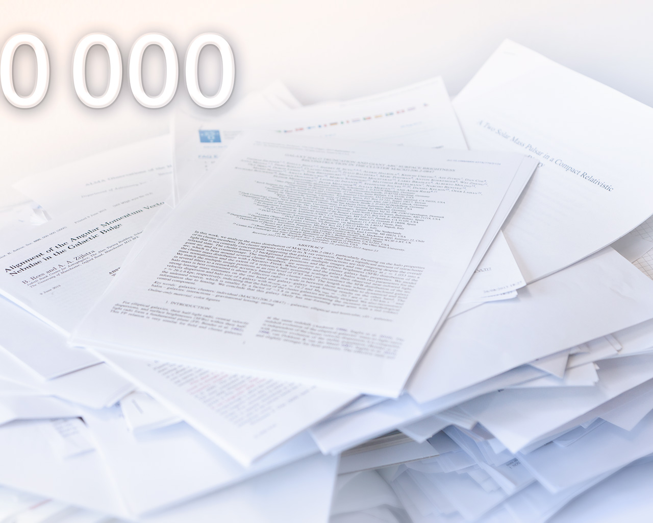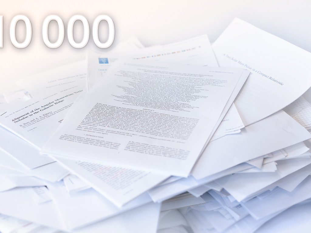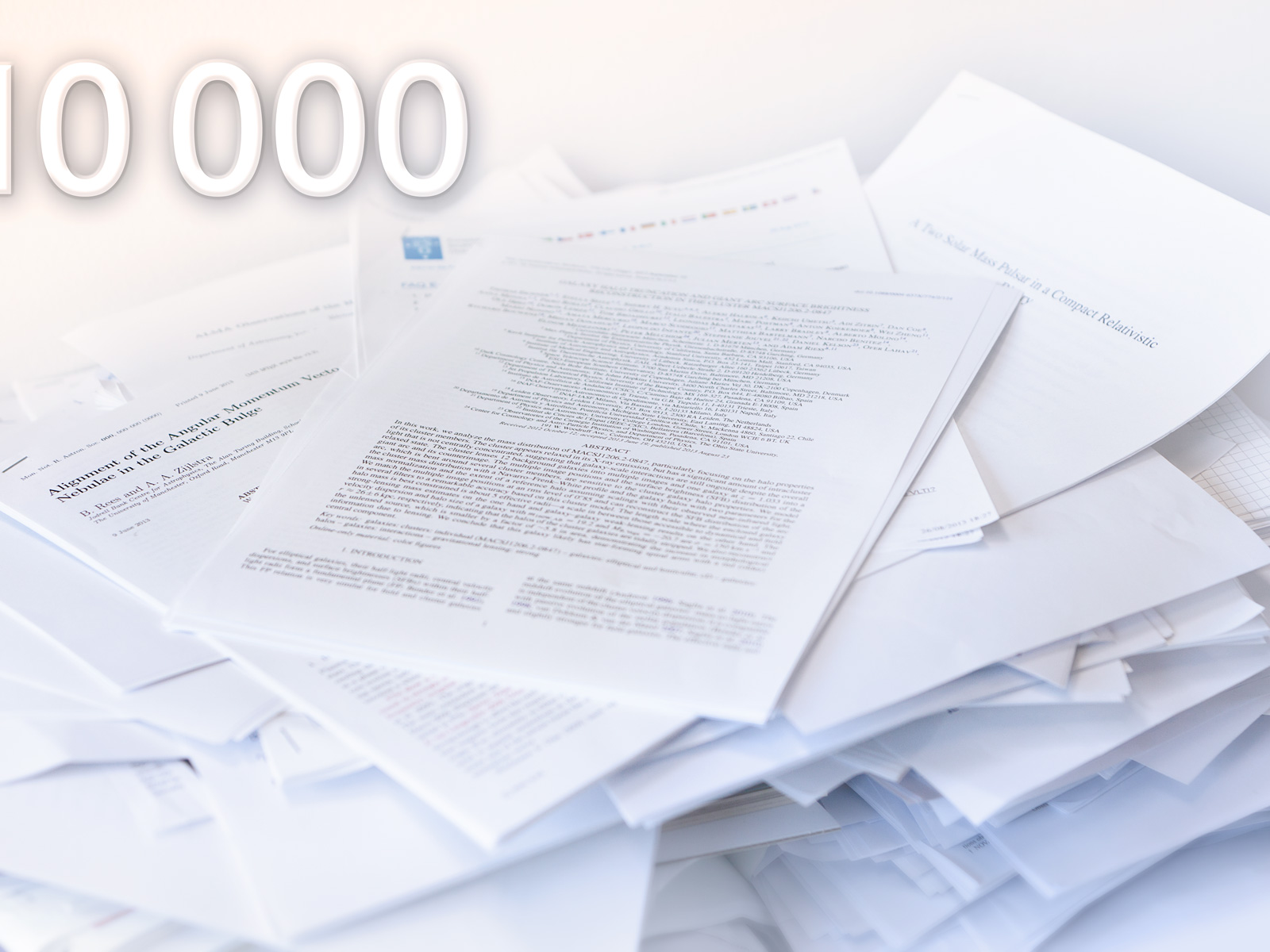 Der 10 000. wissenschaftliche Artikel, der auf Daten von ESO-Einrichtungen basiert, ist veröffentlicht worden. Der Fachartikel, der die 10.000er-Grenze überschritten hat, trägt den Titel „Galaxy Halo Truncation and Giant Arc Surface Brightness Reconstruction in the Cluster MACSJ1206.2-0847“, stammt von Eichner et al. (ApJ, 2013, vol. 774, p. 124) und verwendet unter anderem Beobachtungen, die mit dem VIMOS-Instrument des Very Large Telescope der ESO und dem Hubble Space Telescope der NASA/ESA gemacht wurden.