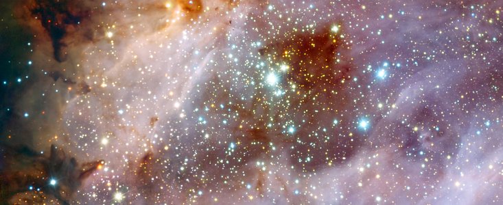 Der offene Sternhaufen Pismis 24 beherbergt einige der massereichsten bekannten Sterne. Er befindet sich im Zentrum des Gasnebels NGC 6357 im Sternbild Scorpius (der Skorpion). Mehrere Sterne in diesem Sternhaufen sind mit über 100 Sonnenmassen echte Schwergewichte. Die seltsamen Formen des Nebels werden durch die intensive Strahlung dieser massereichen und heißen Sterne verursacht. Gas und Staub tragen aber nicht nur zum nebligen Eindruck des Bildes bei, sondern verbergen auch sehr junge, massereiche Sterne vor Beobachtungen im sichtbaren Licht.