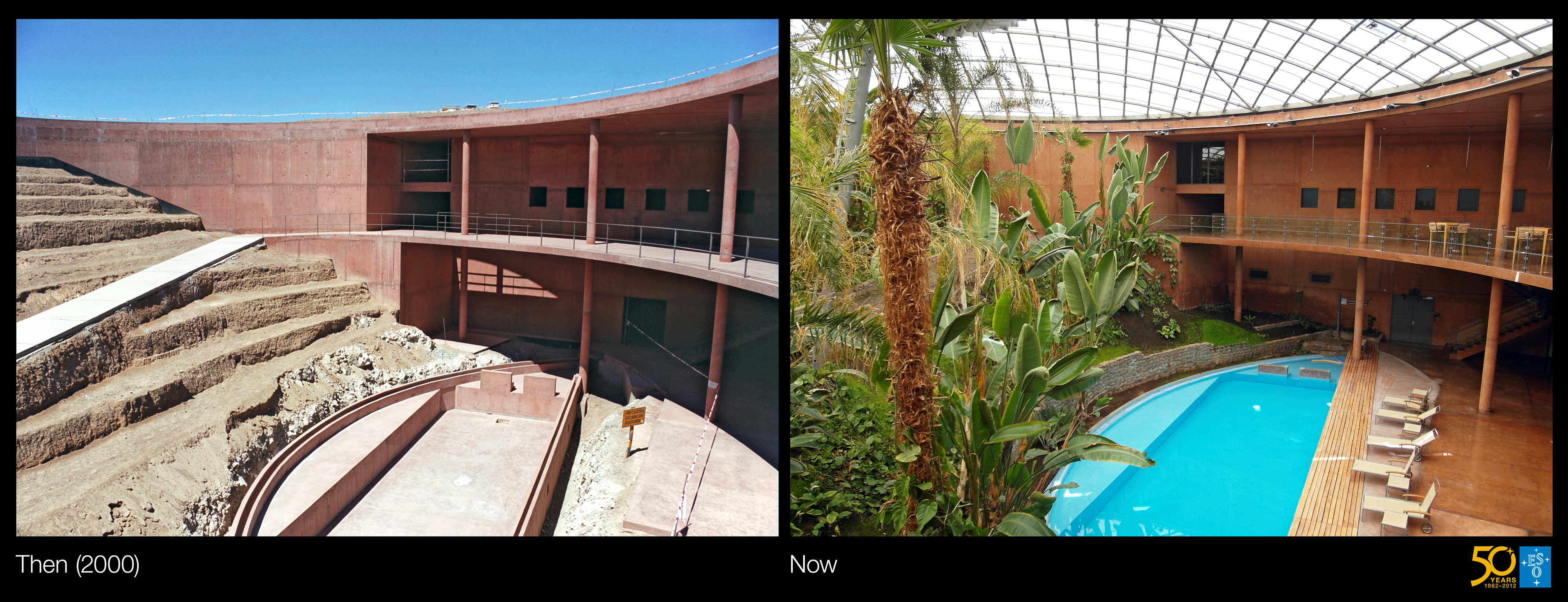 Dies ist eine Vergleichsaufnahme der historischen und der aktuellen Aufnahme des „Damals und Heute“-Bilds der Woche" Eine Oase für Astronomen".