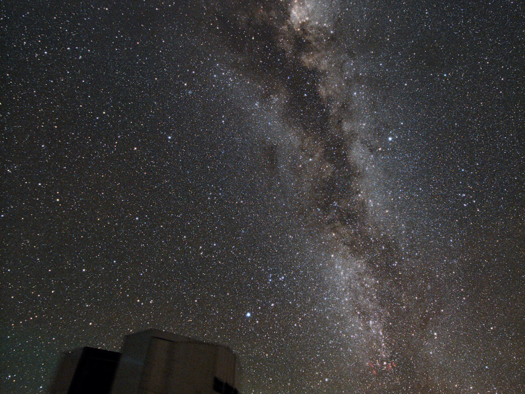Die Milchstraße leuchtet in voller Pracht über den vier Hauptteleskopen und einem der Hilfsteleskope des Very Large Telescope (VLT) der ESO.