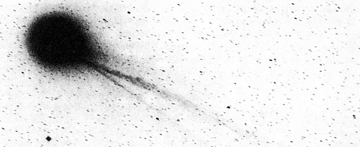 Am 9. Dezember 1985 wurde Komet Halley mit dem 1-Meter-Schmidt-Teleskop der ESO aufgenommen. Die Belichtungszeit betrug 10 Minuten, verwendet wurde eine blauempfindliche Emulsion. Das Teleskop wurde auf den sich bewegenden Kometen nachgeführt, die Sterne im Bildfeld sind daher zu kurzen Strichen verzogen.