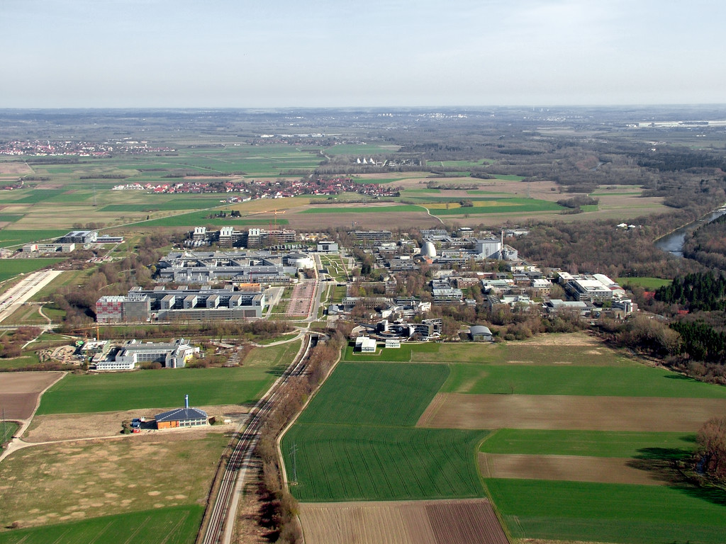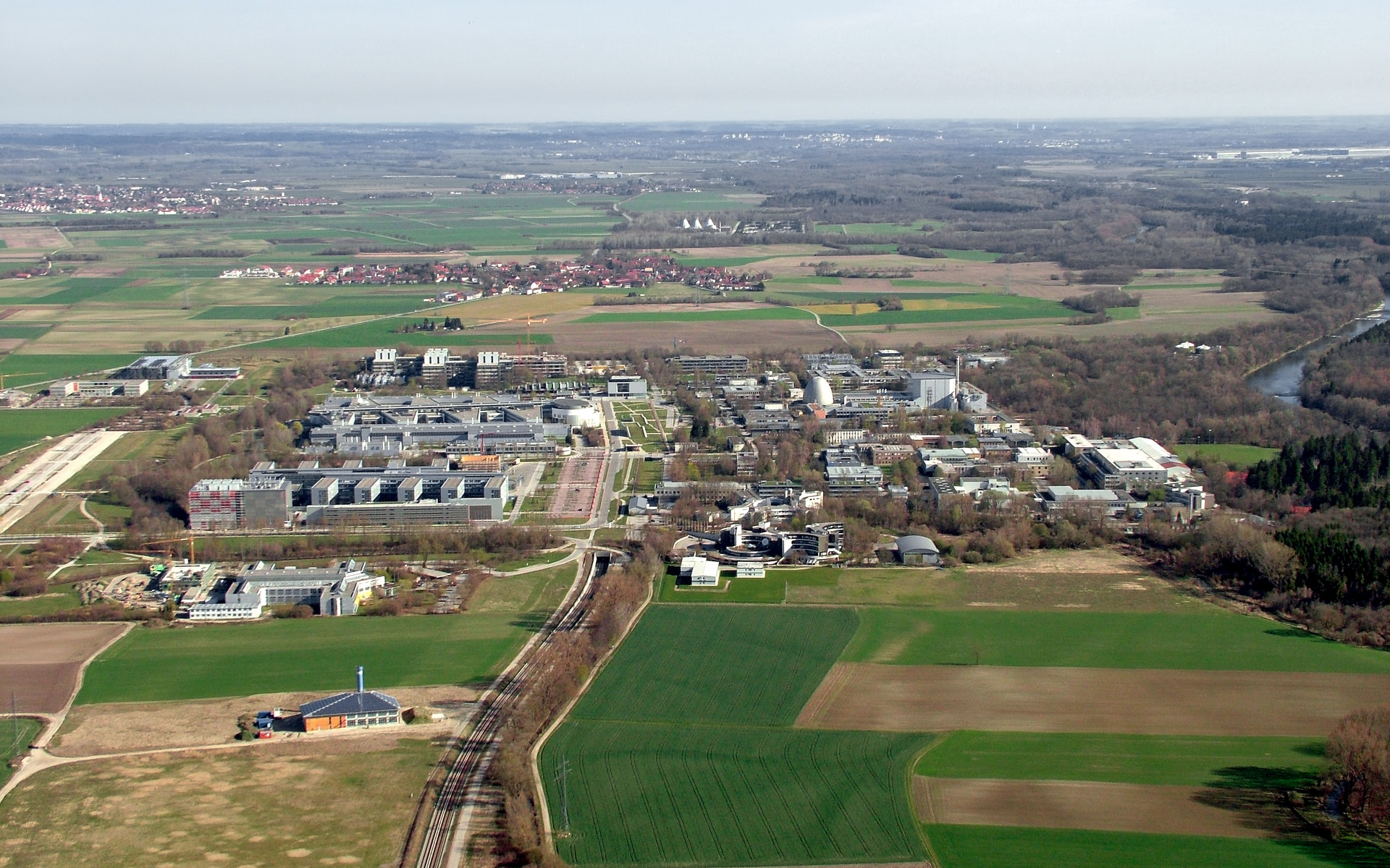 This aerial view shows ESO's headquarters in Garching, near Munich, Germany. ESO HQ is the collection of buildings in the centre foreground of the image. Also visible are the Garching campus of the Technical University of Munich, Leibniz Rechenzentrum and the Max Planck Institute for Particle Physics.