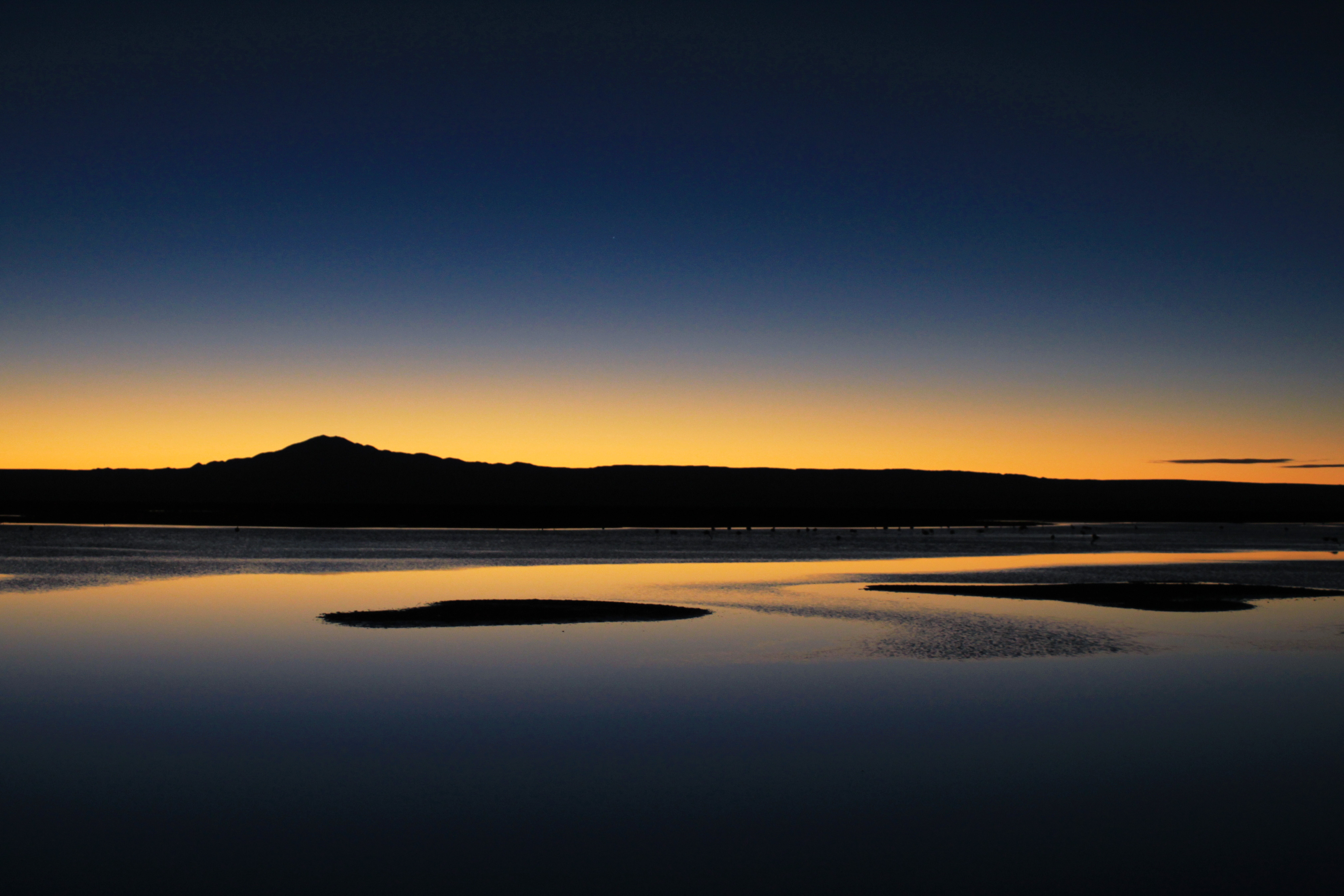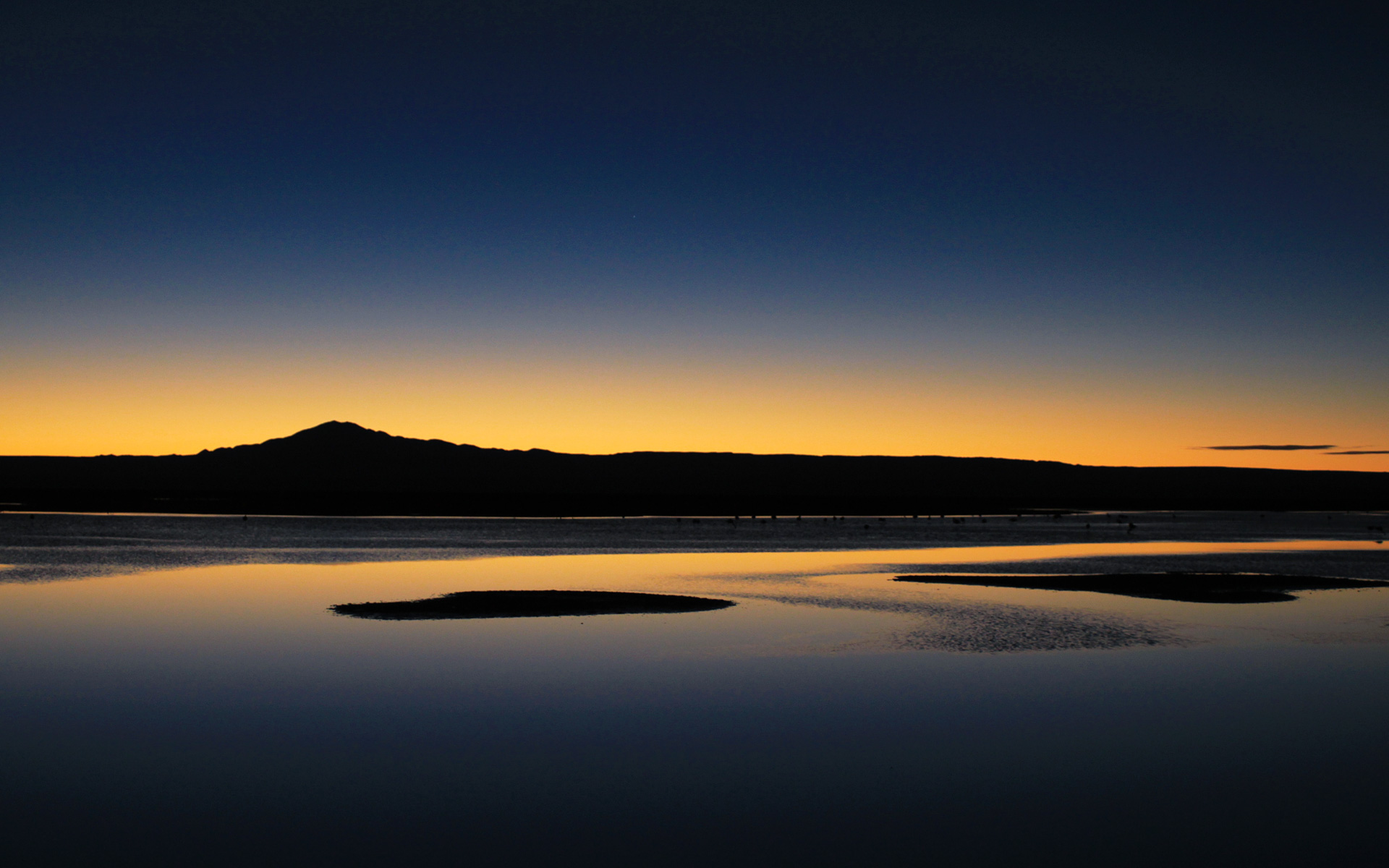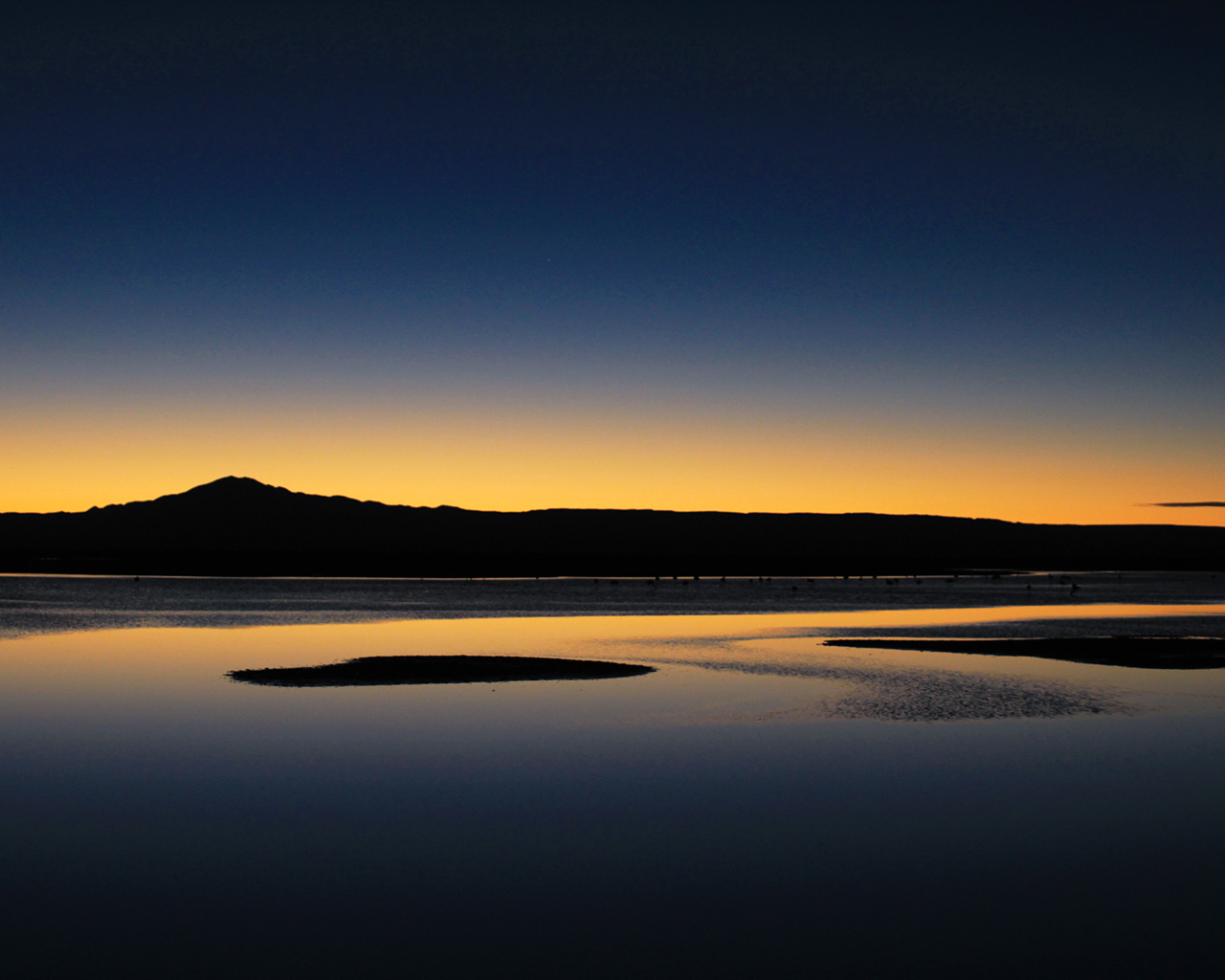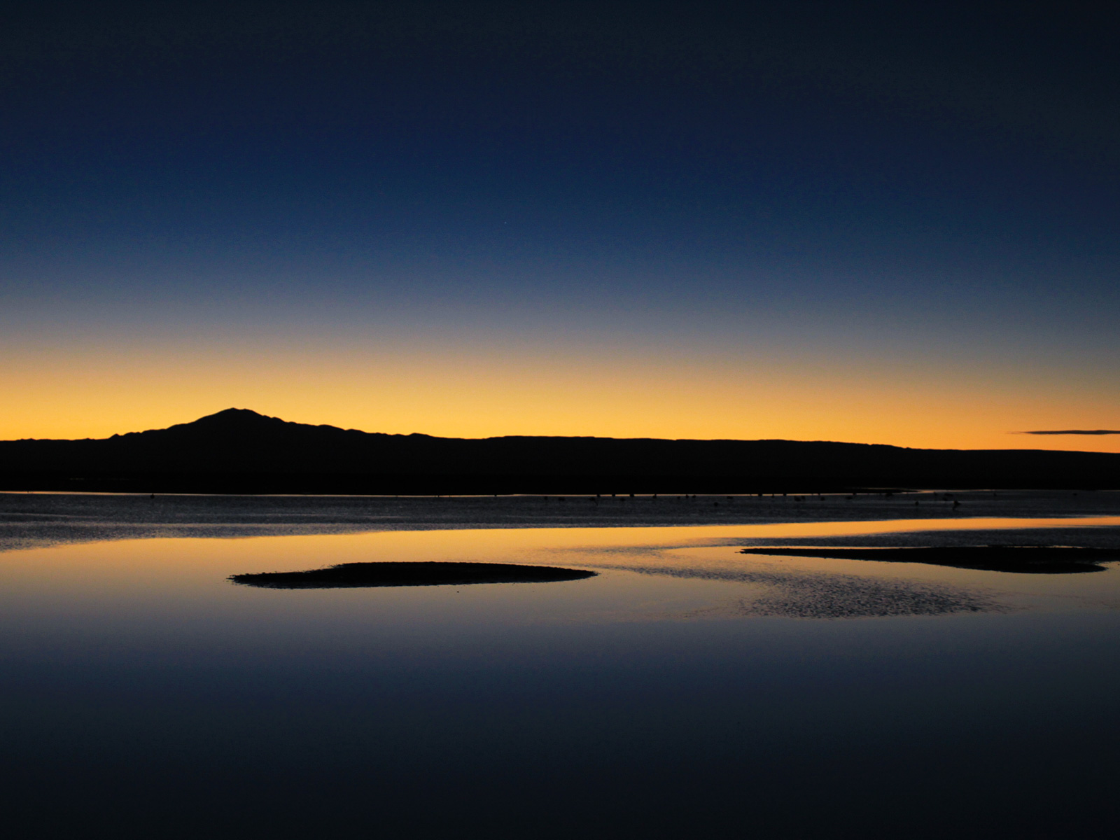 In the Atacama Desert in Chile rainfall is often not detected for years, but here a rare lagoon has formed. This picture was taken near the site of near The Atacama Large Millimeter/submillimeter Array (ALMA).