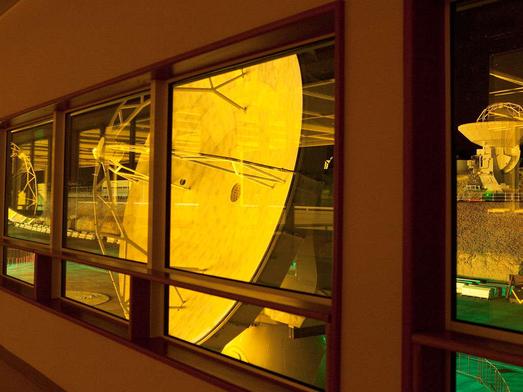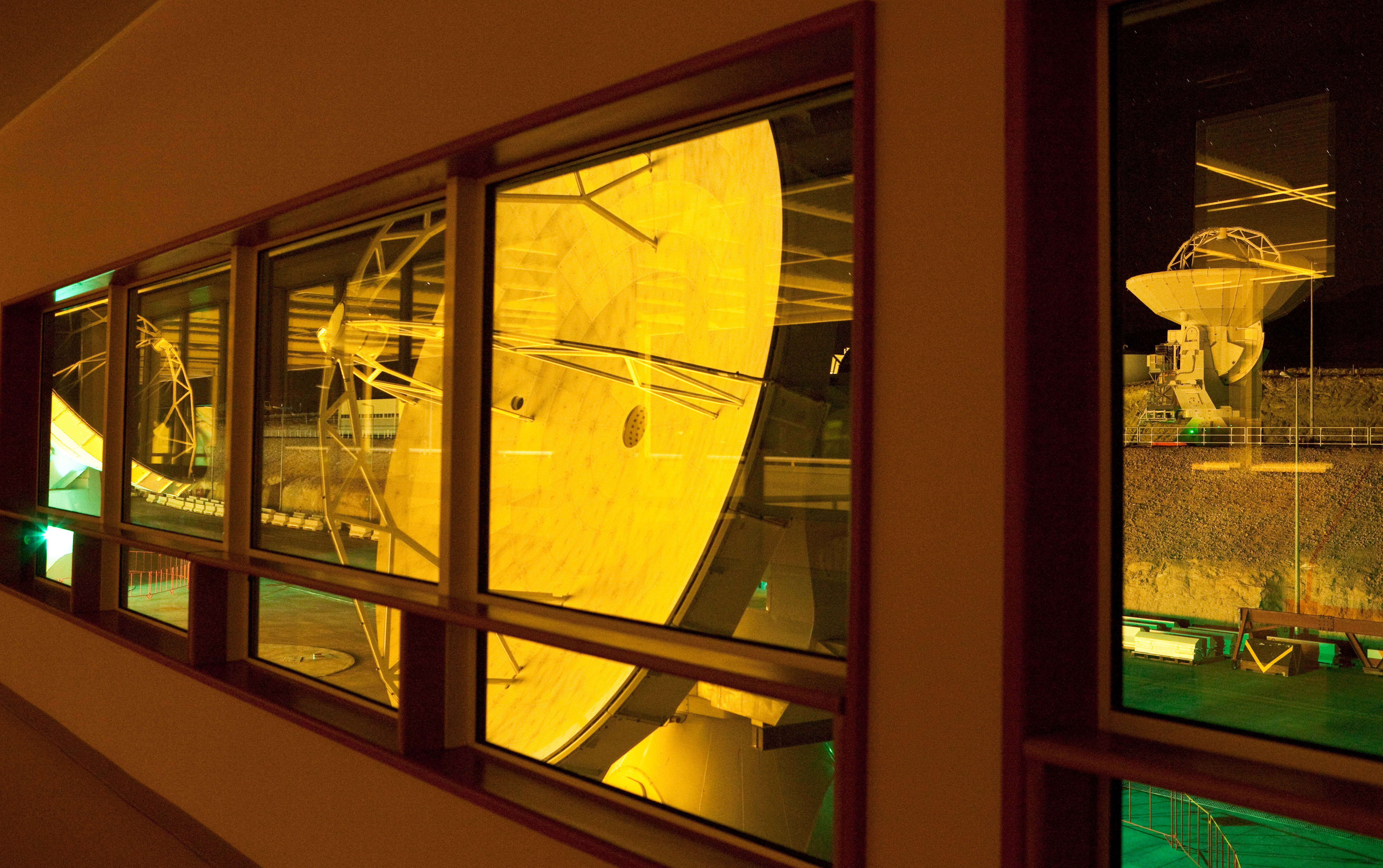 View from inside the main building of the 2,900 metre high ALMA Operation Support Facility. Three antennas currently being tested are seen outside. On 30 April, scientists and engineers working on the world’s largest astronomical project, the Atacama Large Millimeter/submillimeter Array (ALMA), have achieved the successful linking of two ALMA astronomical antennas, synchronised with a precision of one millionth of a millionth of a second, to observe the planet Mars. The observations demonstrate ALMA’s full hardware functionality and connectivity. When completed around 2012, ALMA will comprise an array of 66 giant 12-metre and 7-metre diameter antennas observing at millimetre and submillimetre wavelengths.