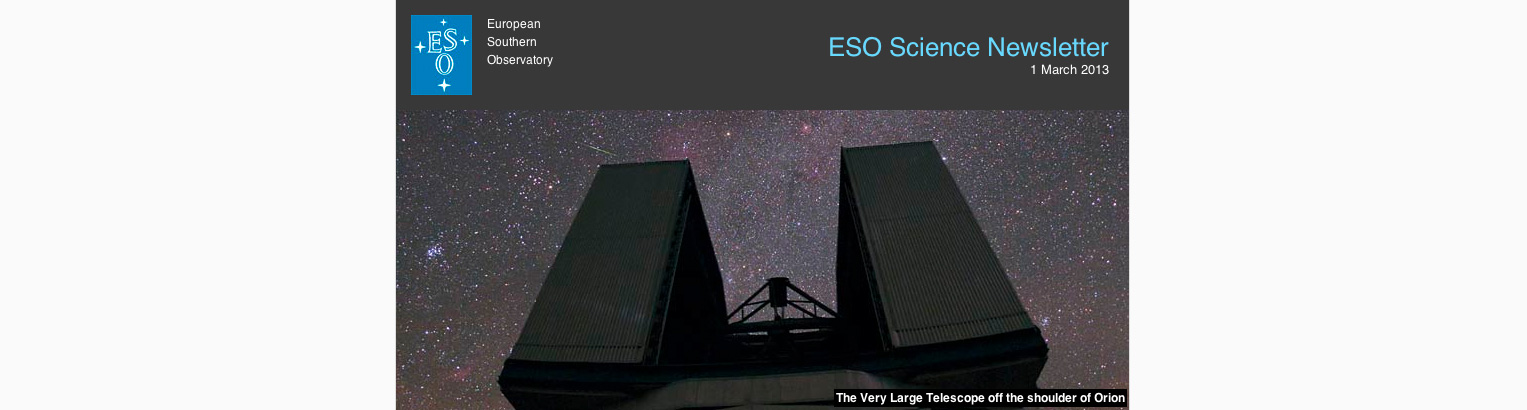 This screenshop shows the first edition of the new ESO Science Newsletter that was issued on 1 March 2013. Along with other items of interest this edition included the announcement of the ESO Call for Proposals for Period 92.