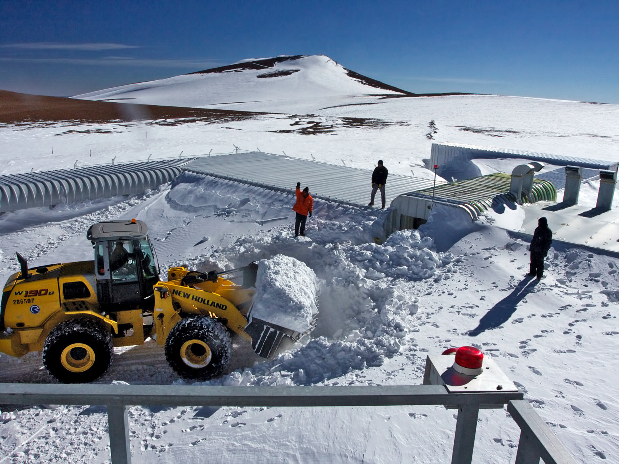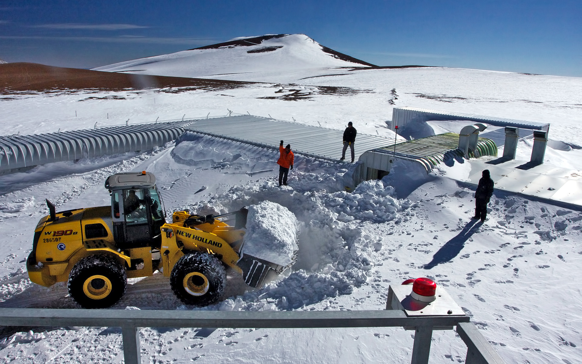 Clearing away snow at the Atacama Pathfinder Experiment telescope (APEX).