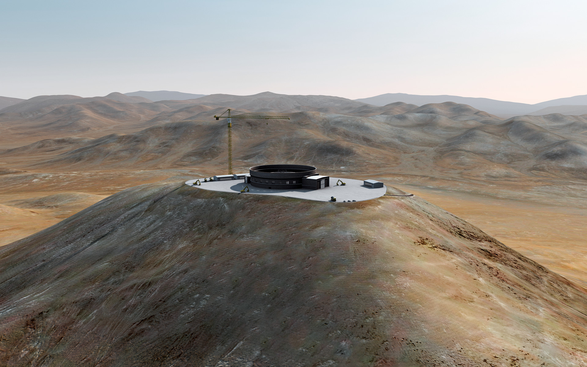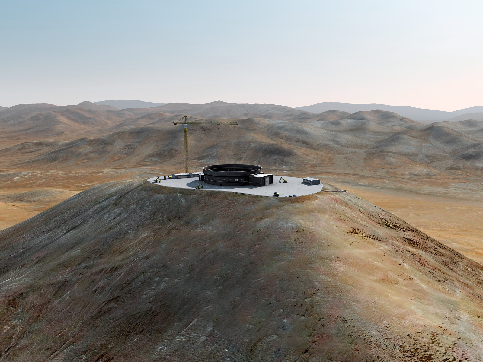 Artist´s impression of how Cerro Armazones, in the Atacama Desert, may look by 2012. Cerro Armazones was selected as the site for the planned European Extremely Large Telescope (E-ELT), on 26 April 2010. The go ahead for E-ELT construction is expected in 2010, with the start of operations planned for early in the next decade. By 2012, the foundations should have been built and the structure of the enclosure should start growing. With its 40-metre-class diameter mirror, the E-ELT will be the largest optical/near-infrared telescope in the world. Cerro Armazones is a mountain at an altitude of 3060 metres in the II Region of Chile, some 130 kilometres south of the town of Antofagasta and about 20 kilometres away from Cerro Paranal, home of ESO’s Very Large Telescope (VLT).