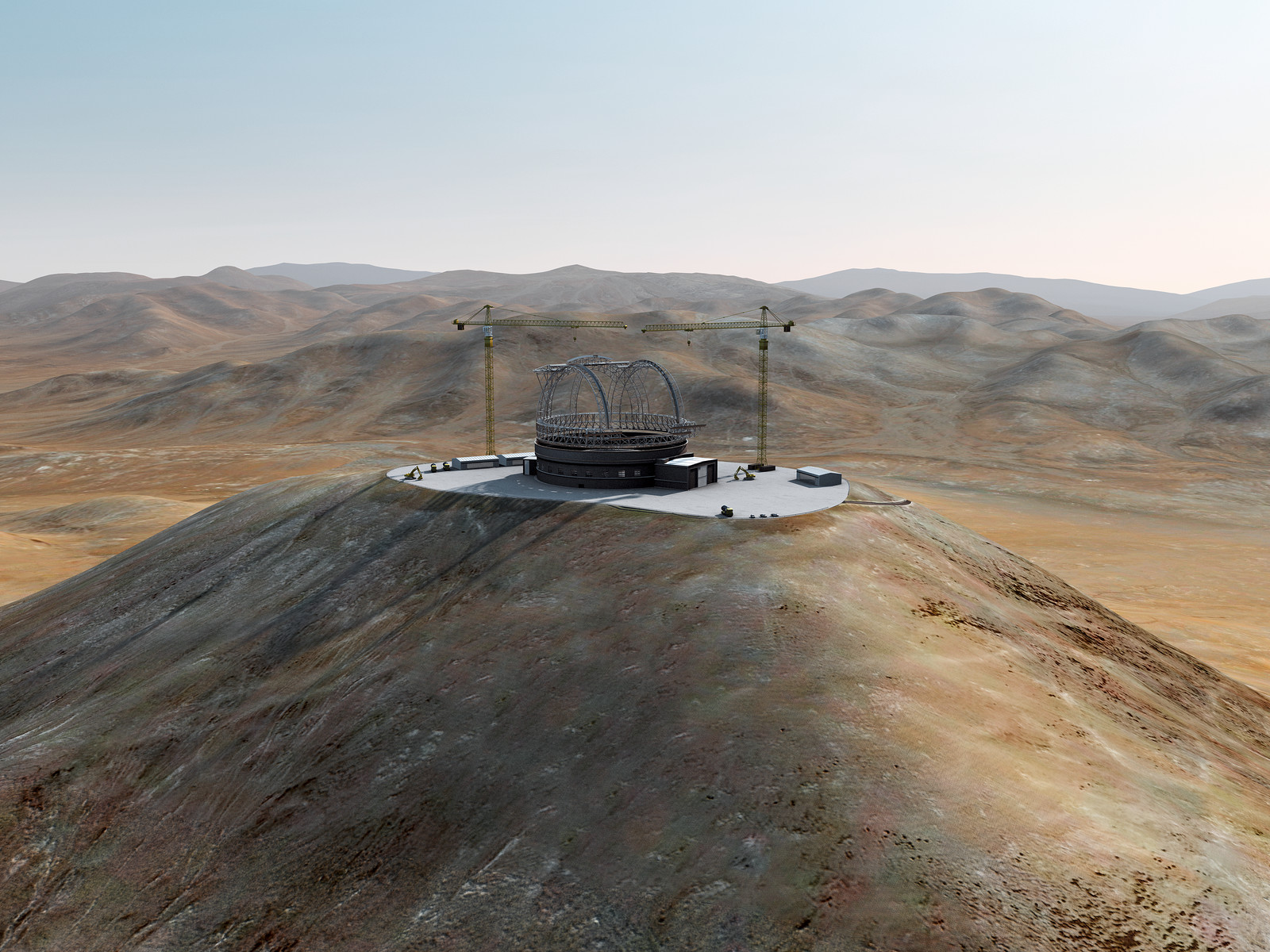Artist´s impression of how Cerro Armazones, in the Atacama Desert, may look by 2013. Cerro Armazones was selected as the site for the planned European Extremely Large Telescope (E-ELT), on 26 April 2010. The go ahead for E-ELT construction is expected in 2010, with the start of operations planned for early in the next decade. By 2013, the building should be near to be completed. With its 40-metre-class diameter mirror, the E-ELT will be the largest optical/near-infrared telescope in the world. Cerro Armazones is a mountain at an altitude of 3060 metres in the II Region of Chile, some 130 kilometres south of the town of Antofagasta and about 20 kilometres away from Cerro Paranal, home of ESO’s Very Large Telescope (VLT).