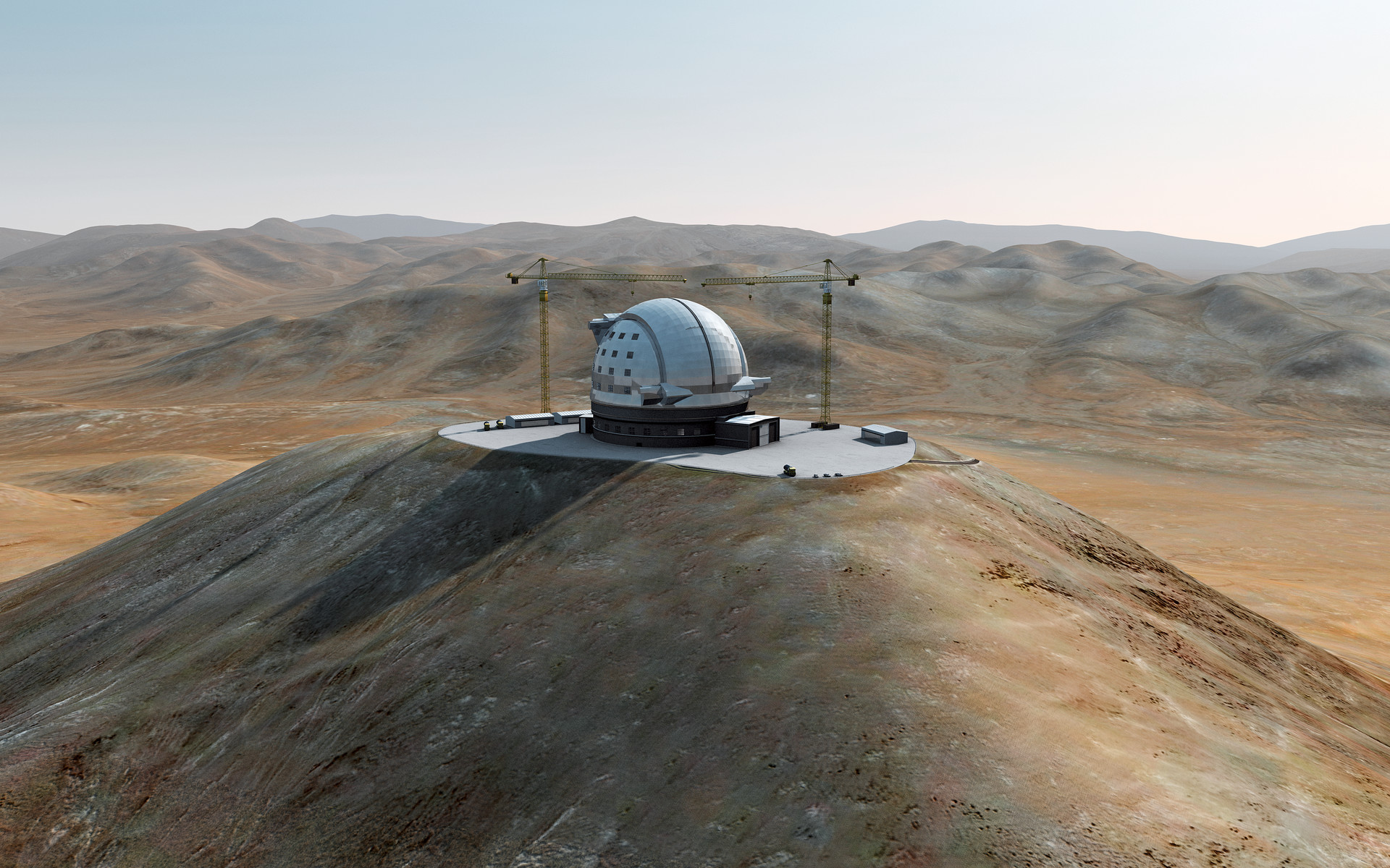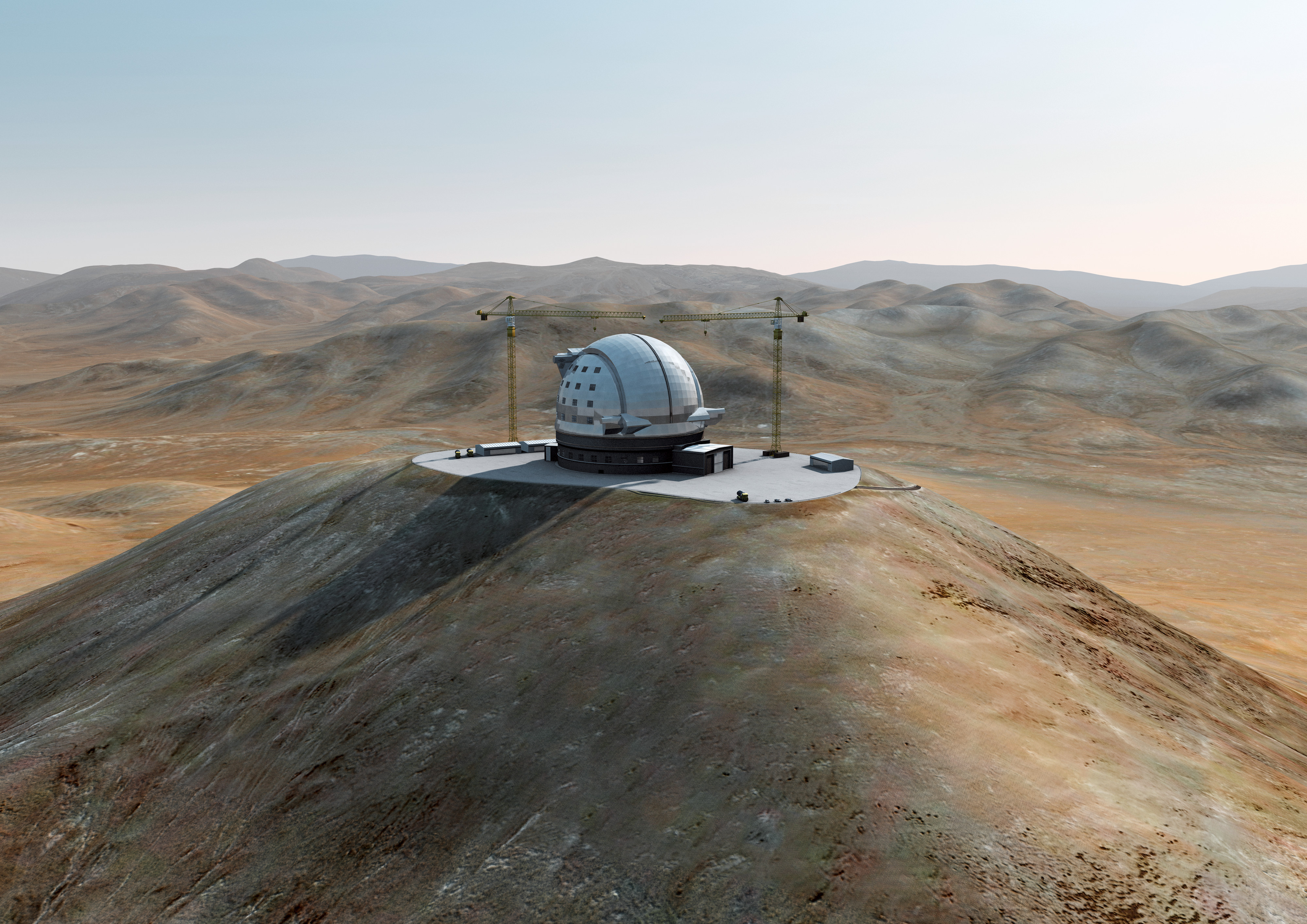 Artist´s impression of how Cerro Armazones, in the Atacama Desert, may look by 2014. Cerro Armazones was selected as the site for the planned European Extremely Large Telescope (E-ELT), on 26 April 2010. The go ahead for E-ELT construction is expected in 2010, with the start of operations planned for early in the next decade. By 2014, the building of the telescope should be completed. With its 40-metre-class diameter mirror, the E-ELT will be the largest optical/near-infrared telescope in the world. Cerro Armazones is a mountain at an altitude of 3060 metres in the II Region of Chile, some 130 kilometres south of the town of Antofagasta and about 20 kilometres away from Cerro Paranal, home of ESO’s Very Large Telescope (VLT).
