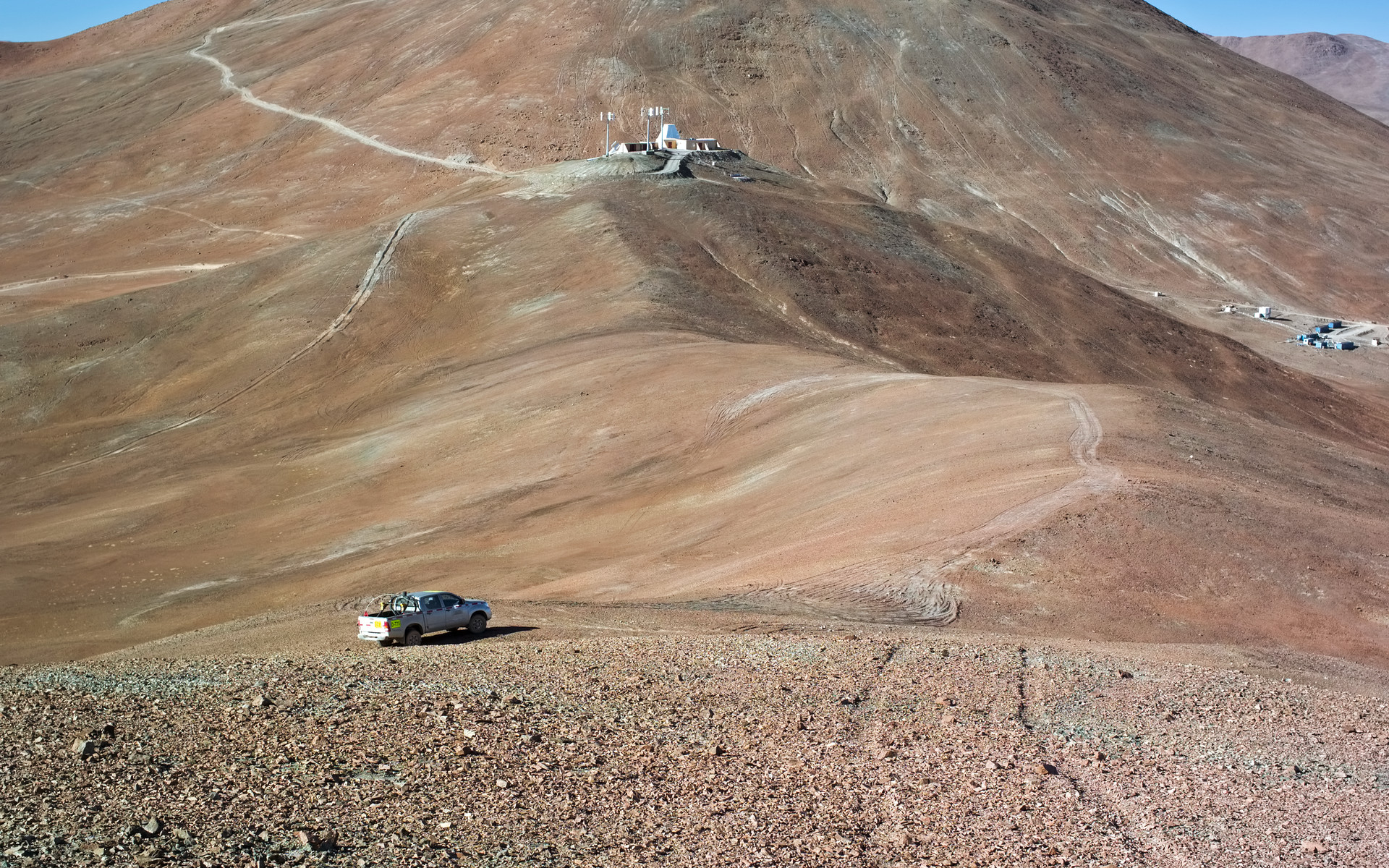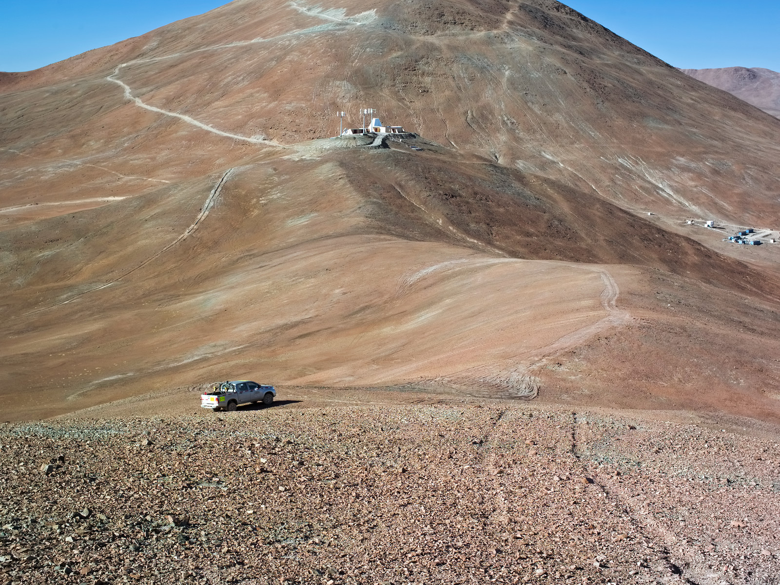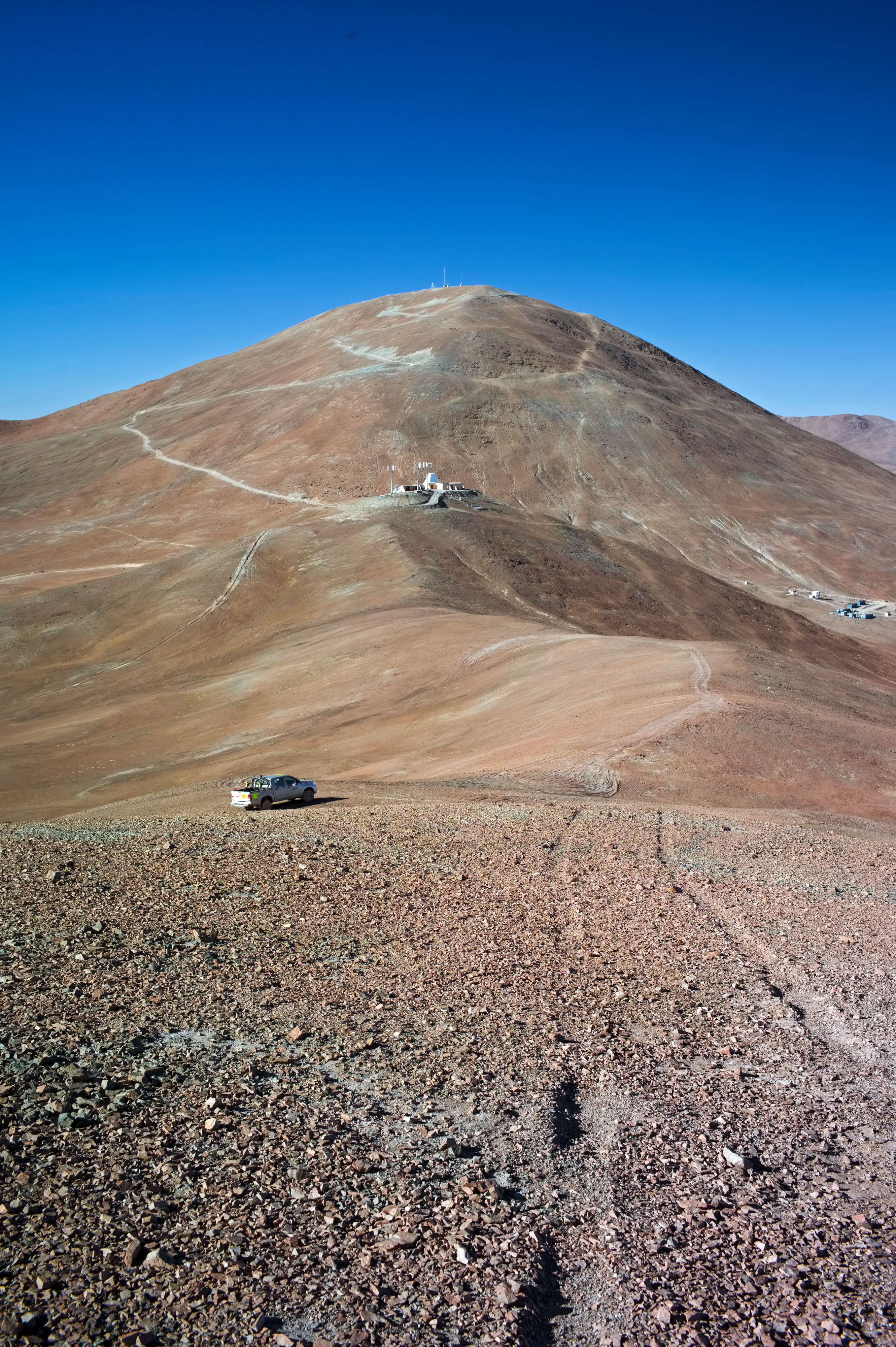 A View at Cerro Armazones from the Southwest. In the foreground the Bochum University Hexapod.