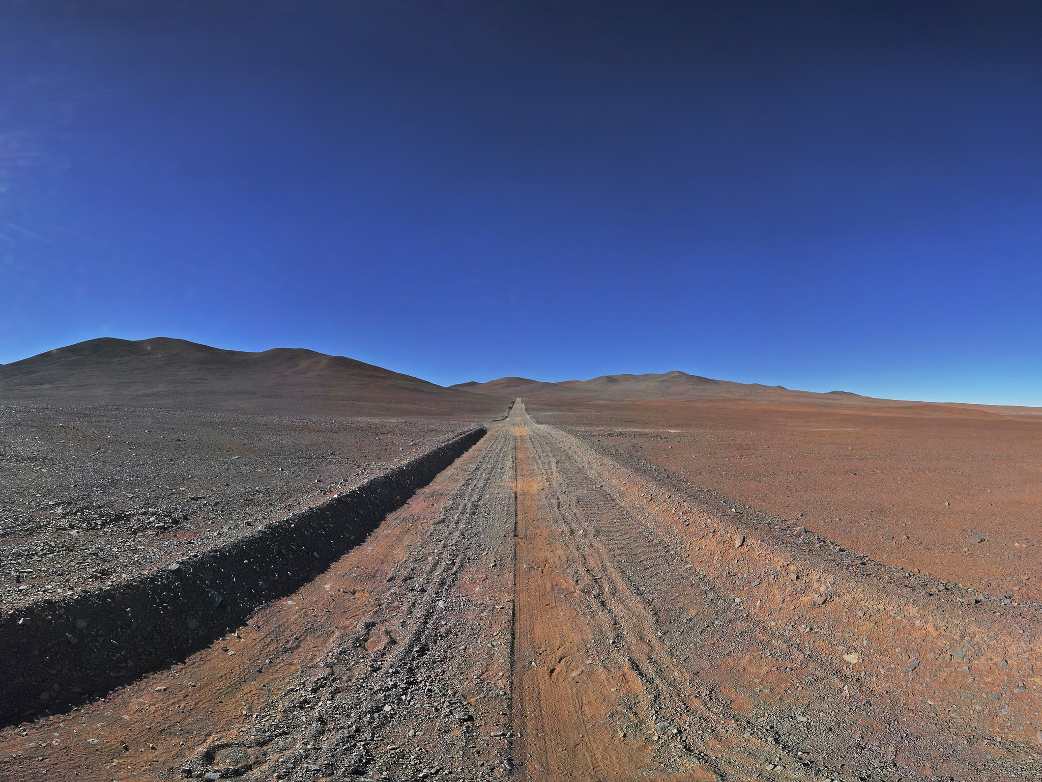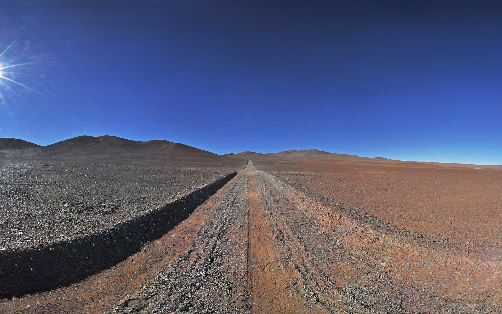 Panoramic view of the road to Cerro Armazones, near ESO's Paranal Observatory, site of the Very Large Telescope (VLT). Cerro Armazones was chosen as the site for the planned European Extremely Large Telescope (E-ELT), which, with its 40-metre-class diameter mirror, will be the world’s biggest eye on the sky.