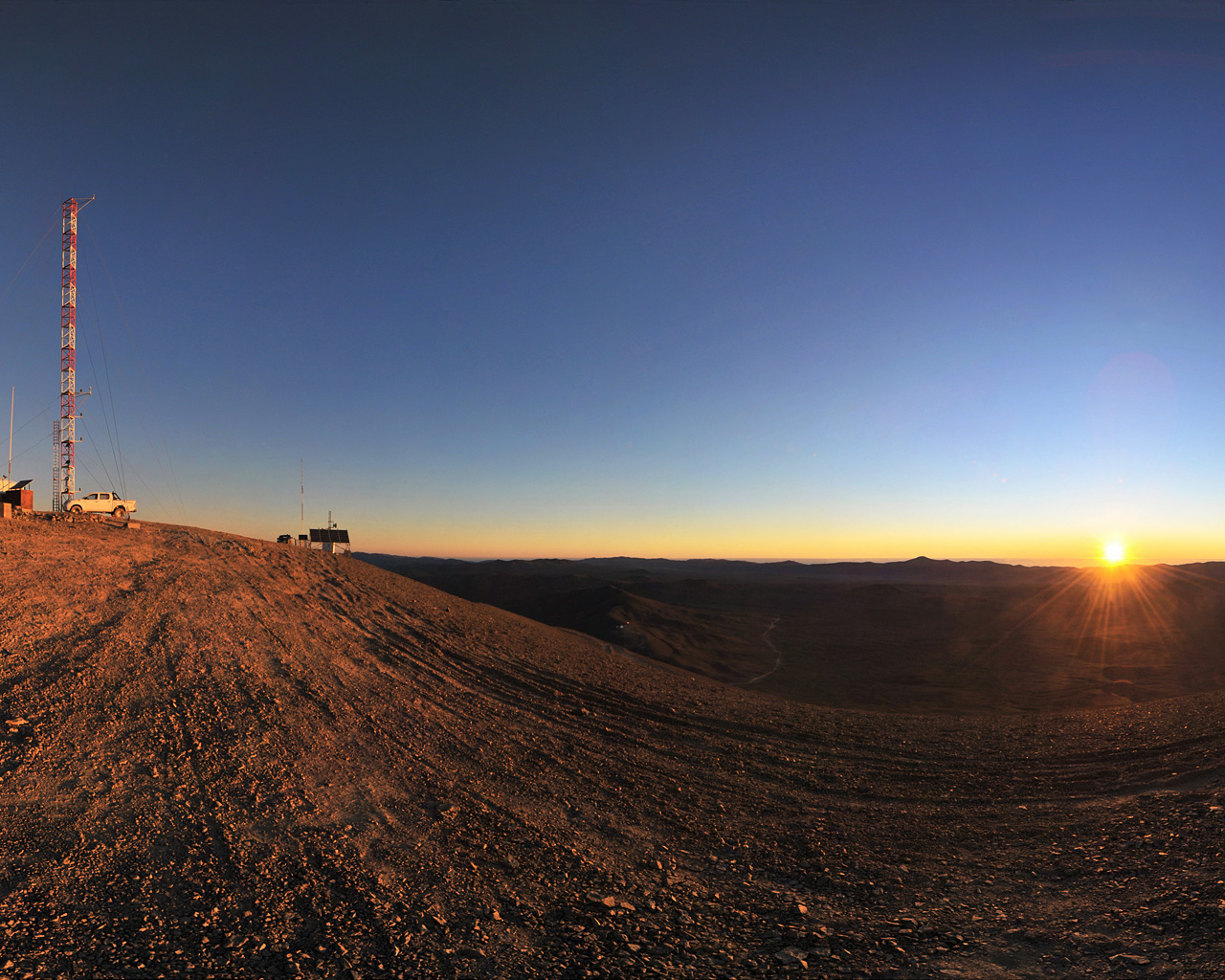 Panoramic view of Cerro Armazones in the Atacama Desert, near ESO's Paranal Observatory, at sunset. Cerro Armazones is the selected site for the planned European Extremely Large Telescope (E-ELT), which, with its 40-metre-class diameter mirror, will be the world’s biggest eye on the sky.