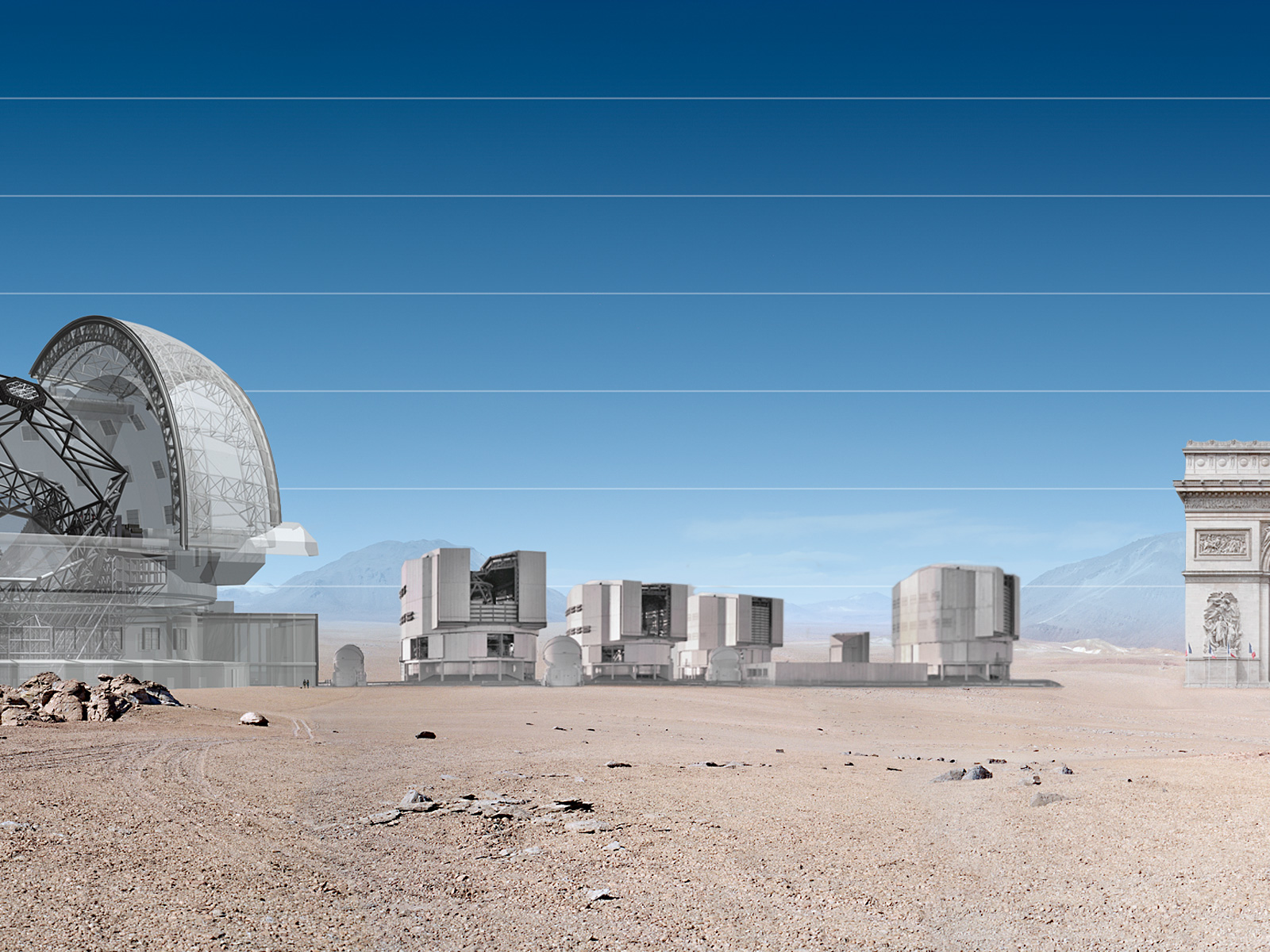 E-ELT and VLT sizes compared with Arc de Triomphe.
