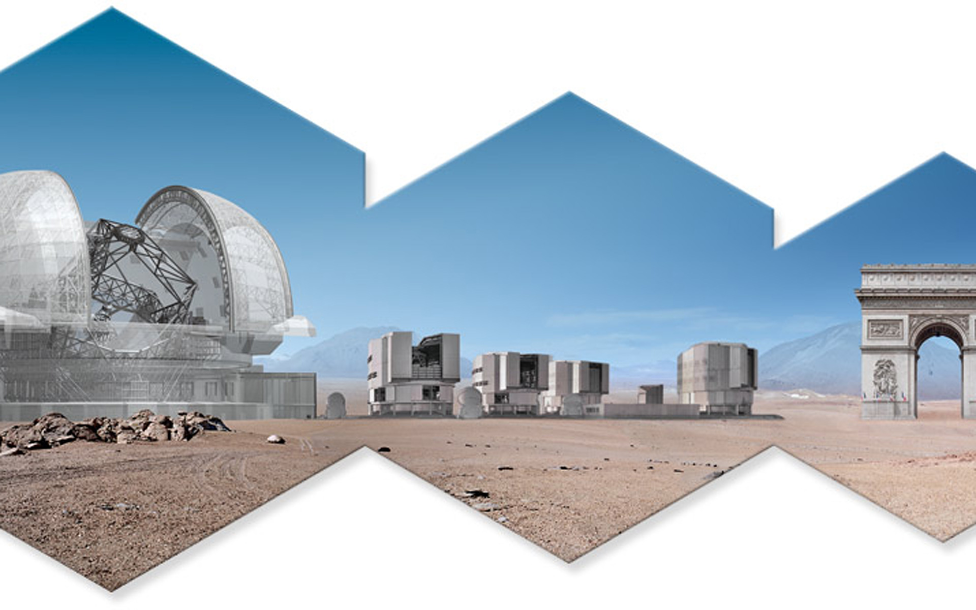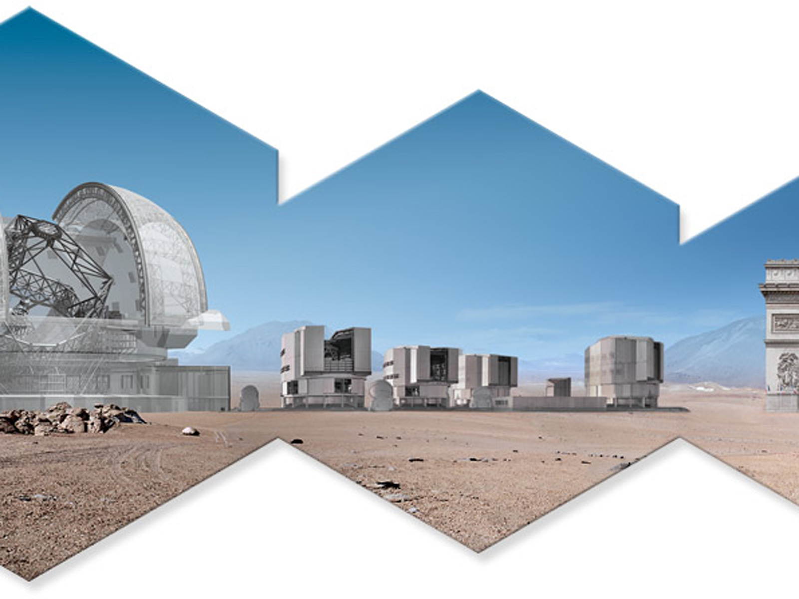 In this artwork is represented the E-ELT, the VLT and the Arc de Triomphe. Read more about the E-ELT on http://www.eso.org/public/teles-instr/e-elt.html